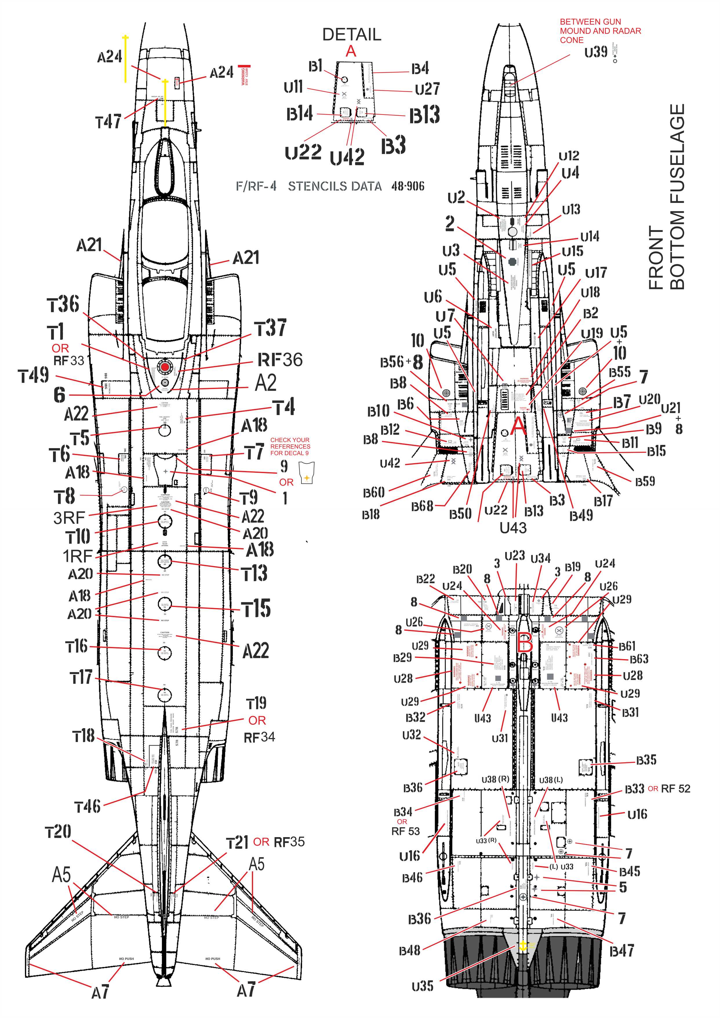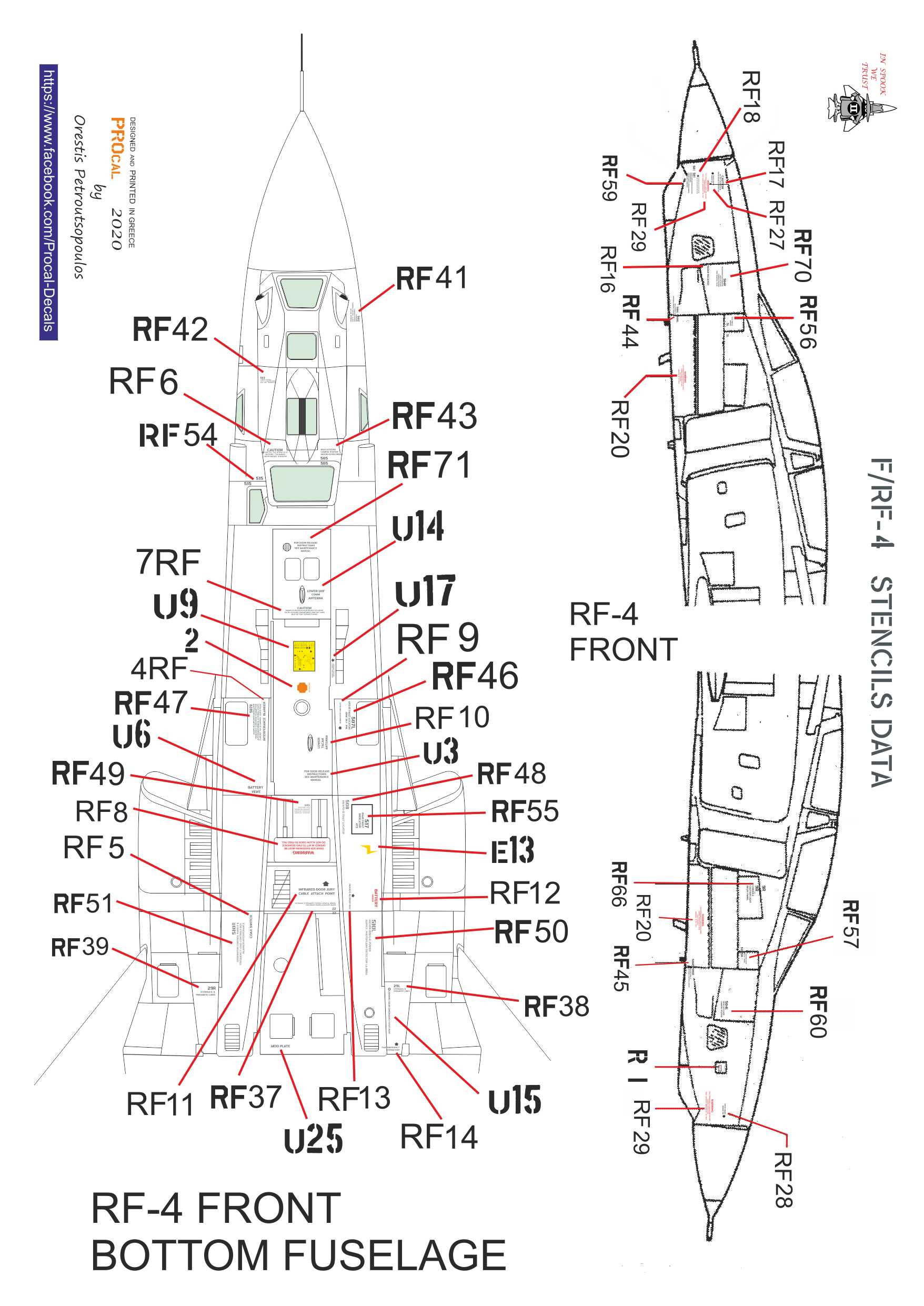 Procal Decals - 1/48 Grey Greek Air Force McDonnell F-4E and RF-4E Phantoms stencil data