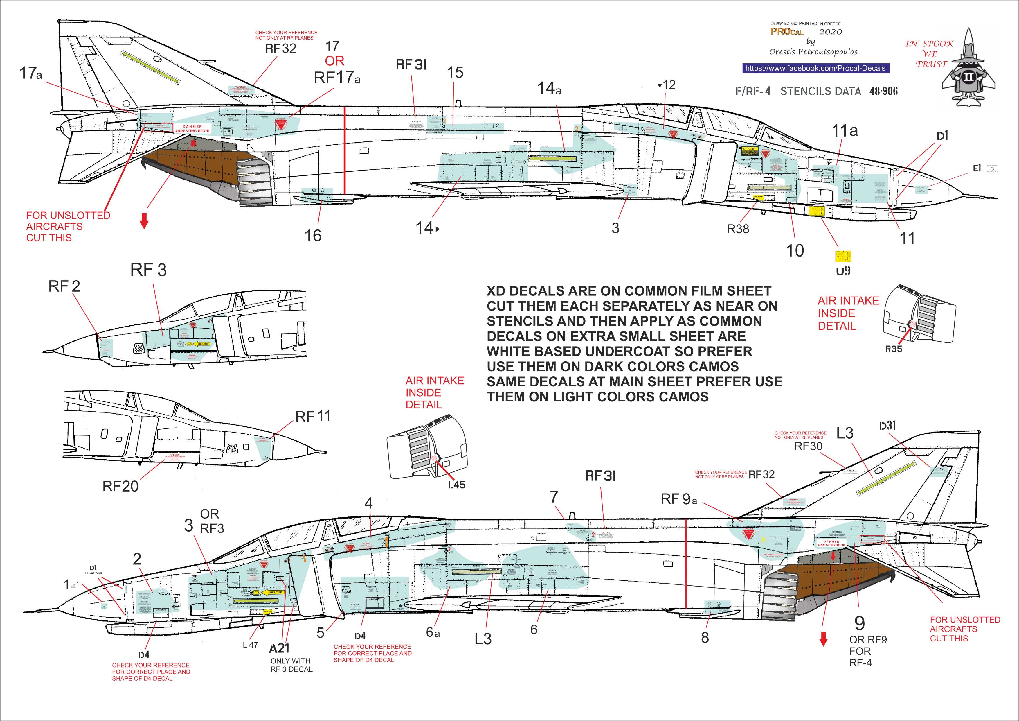 Procal Decals - 1/72 Grey Greek Air Force McDonnell F-4E and RF-4E Phantoms stencil data