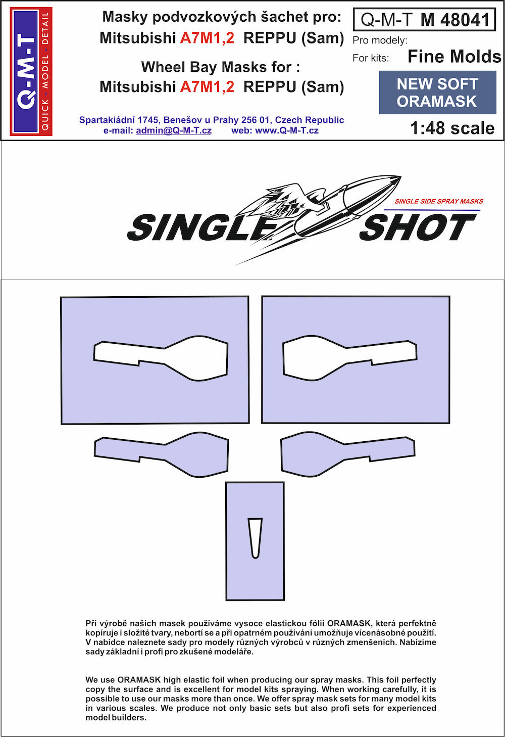 Q-M-T - 1/48 Mitsubishi A7M1 Reppu wheel bay paint masks (for Fine Molds kits) made from New Soft Oramask