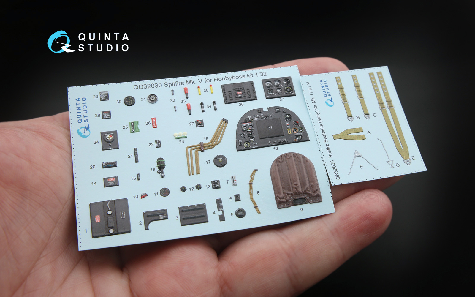 Quinta Studio - 1/32 Supermarine Spitfire Mk.V 3D-Printed & coloured Interior on decal paper (for Hobby Boss kits)