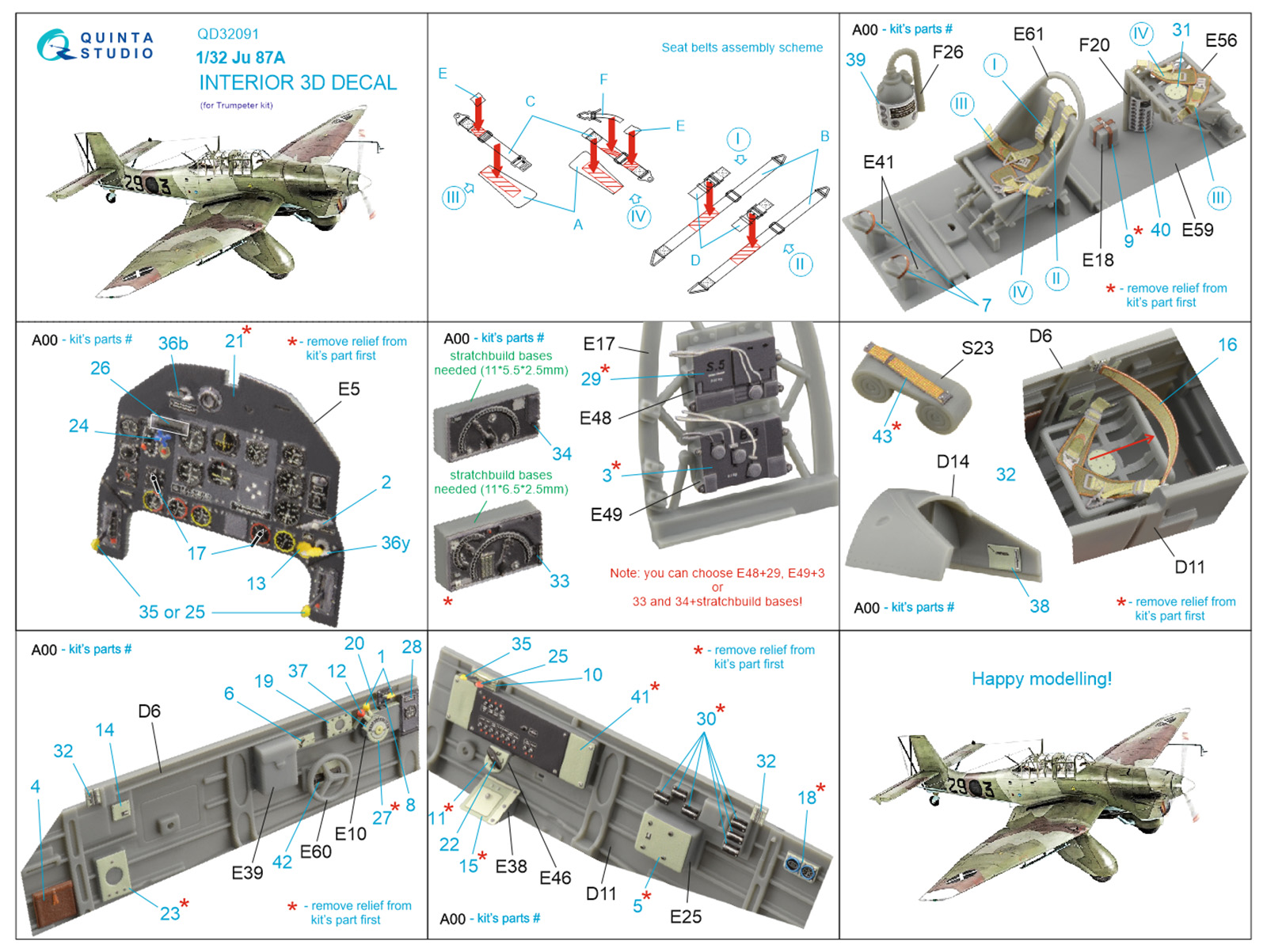 Quinta Studio - 1/32 Junkers Ju-87A 'Stuka' 3D-Printed & coloured Interior on decal paper (designed to bee used with Trumpeter kits)