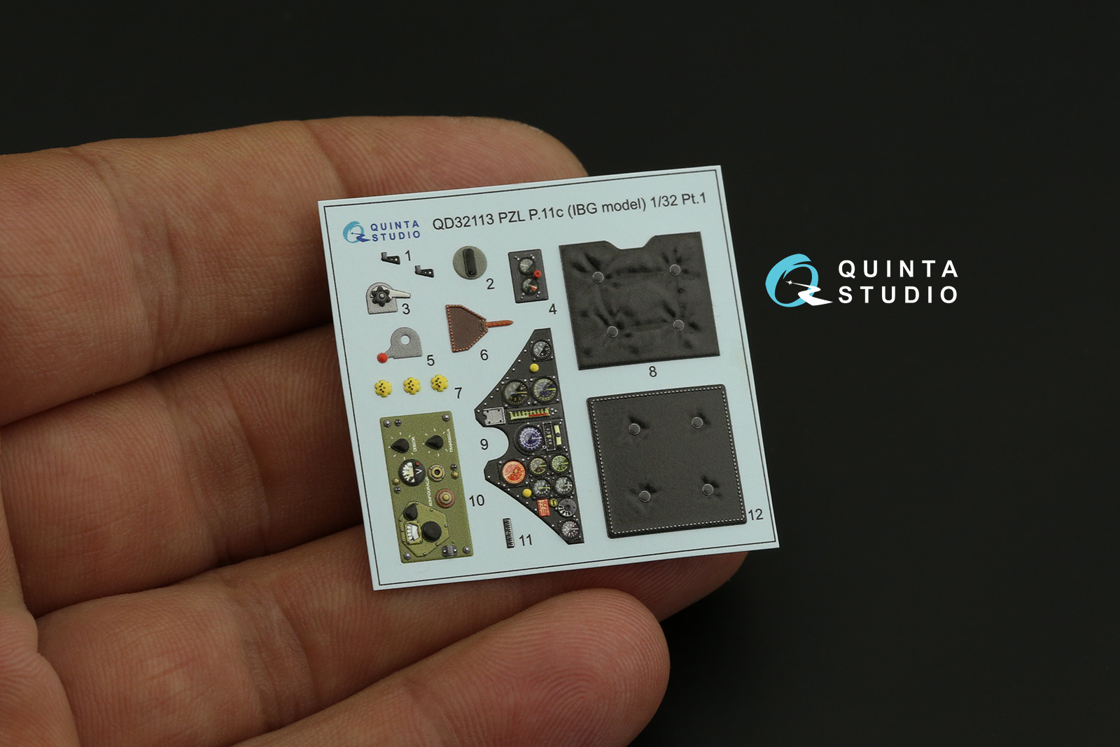 Quinta Studio - 1/32 Pzl P.11c 3D-Printed & coloured Interior on decal paper (for Ibg Model kits)