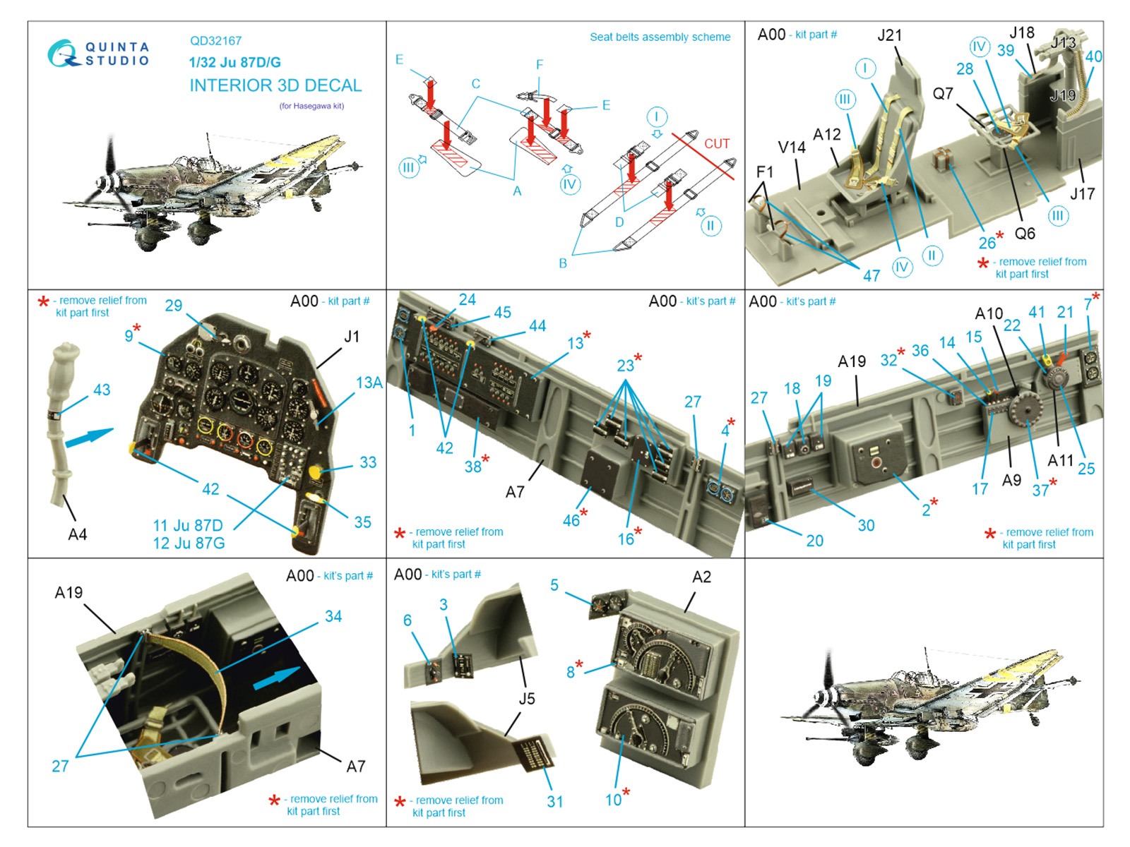Quinta Studio - 1/32 Junkers Ju-87D/G Stuka 3D-Printed & coloured Interior on decal paper (for Hasegawa kits)