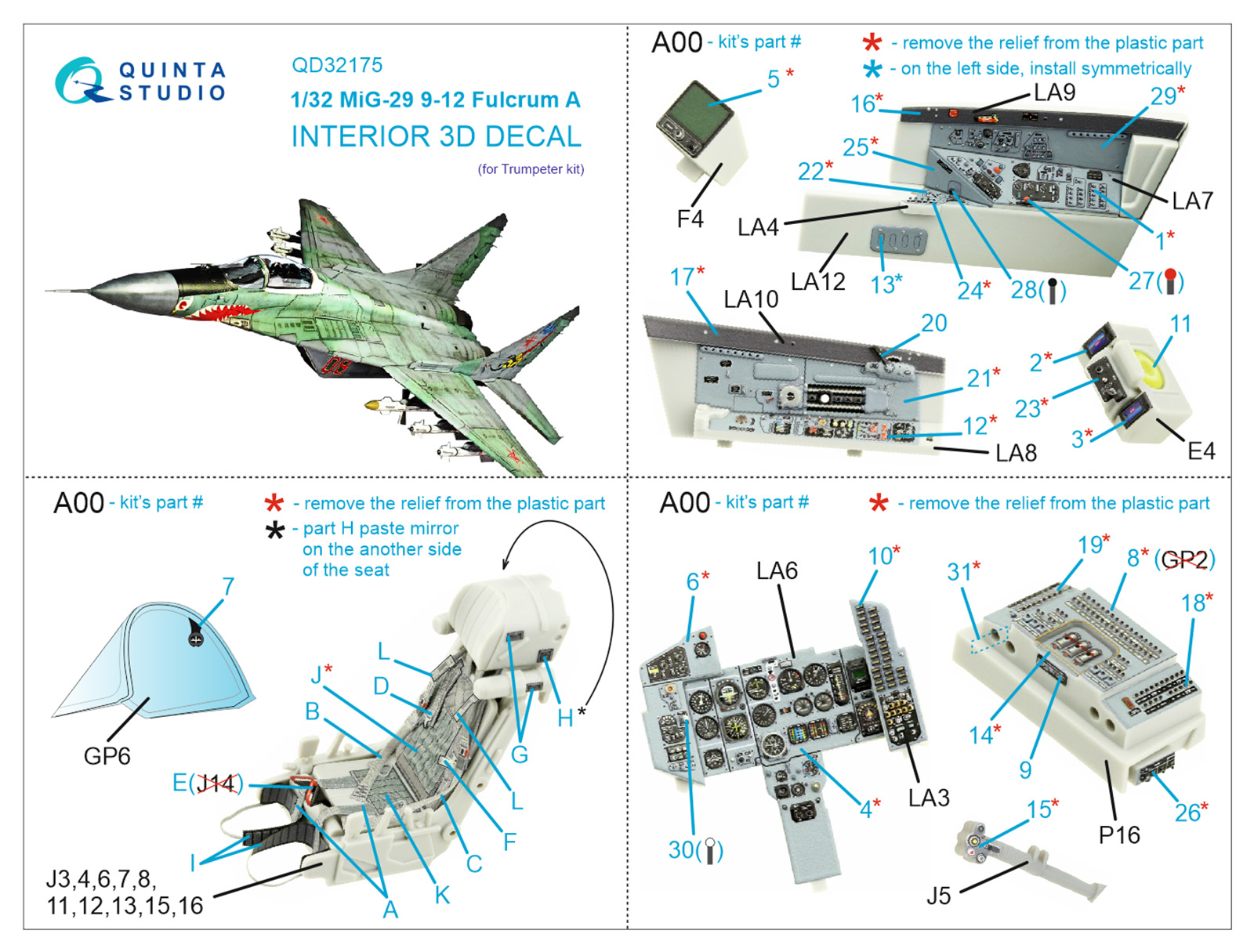 QUINTA STUDIO - 1/32 MiG-29 9-12 Fulcrum A 3D-Printed & color Interior