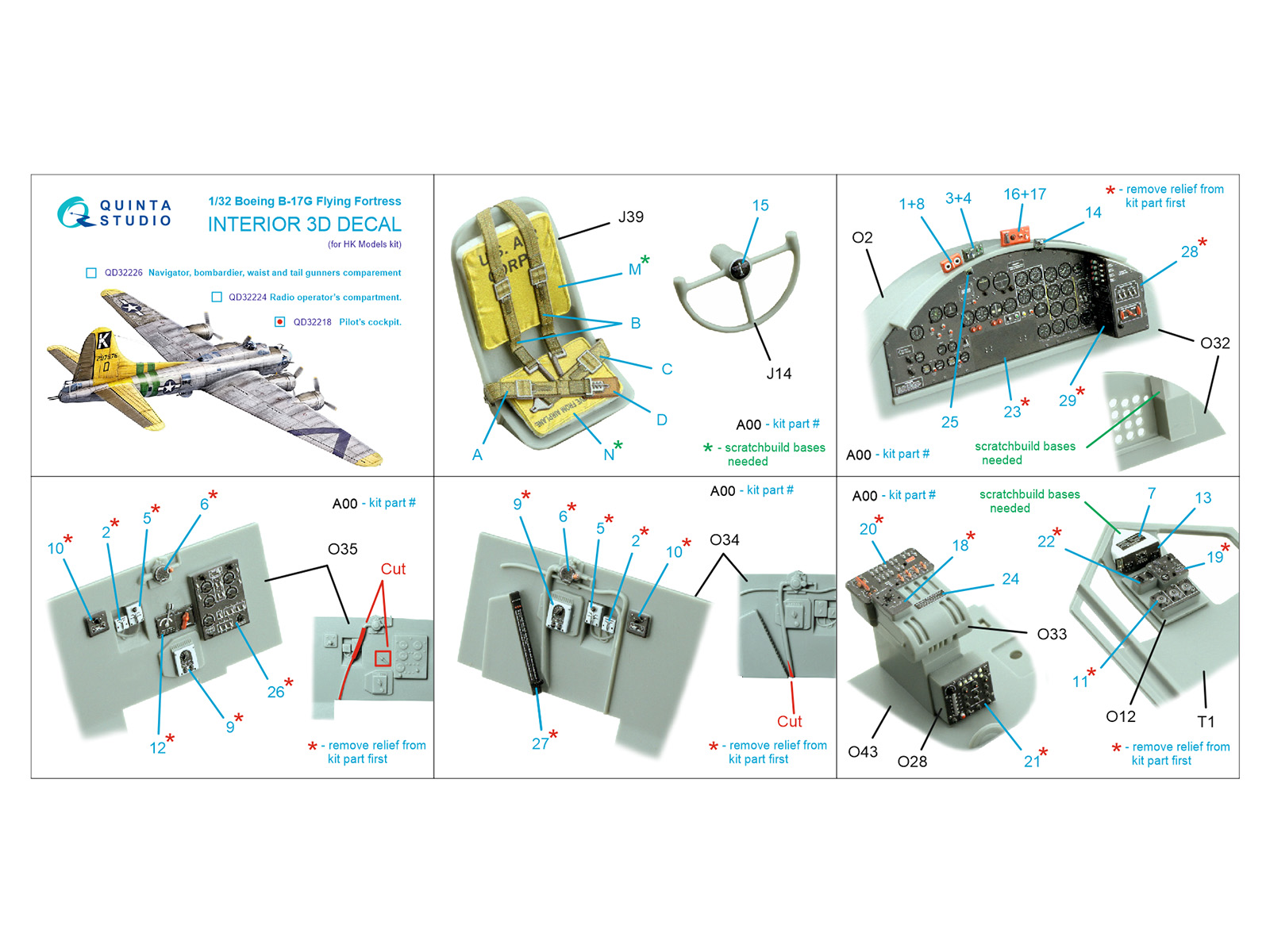 Quinta Studio - 1/32 Boeing B-17G Pilot's cockpit. Interior for HK models