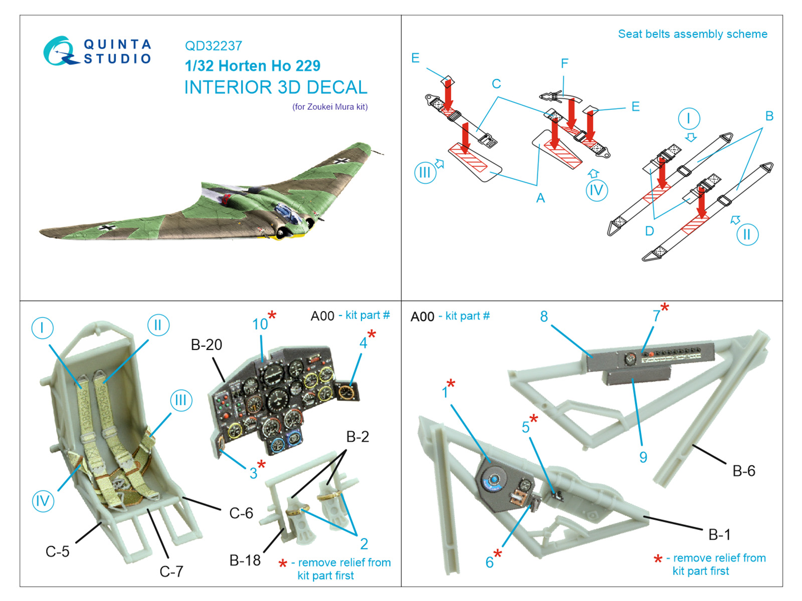 Quinta Studio - 1/32 Horten Ho-229 3D-Printed coloured Interior for Zoukei-Mura
