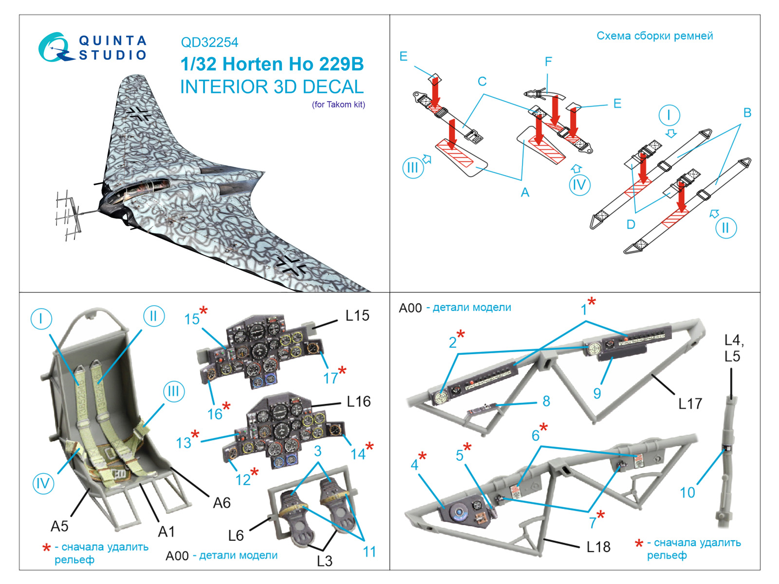 Quinta Studio - 1/32 Horten Ho 229B 3D-Printed & coloured Interior for Takom