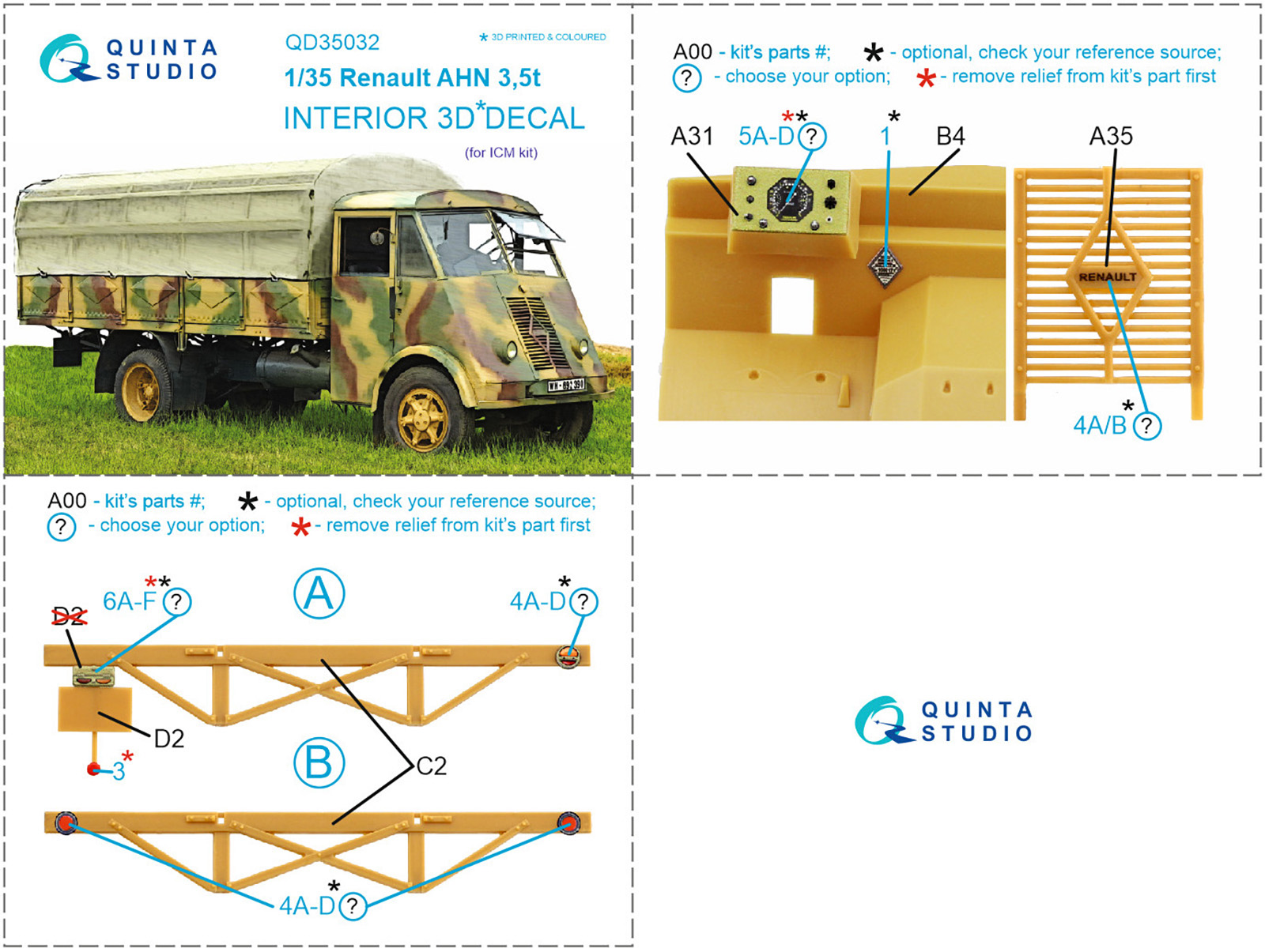 QUINTA STUDIO - 1/35 Renault AHN 3.5t 3D-Printed & color Interior ICM