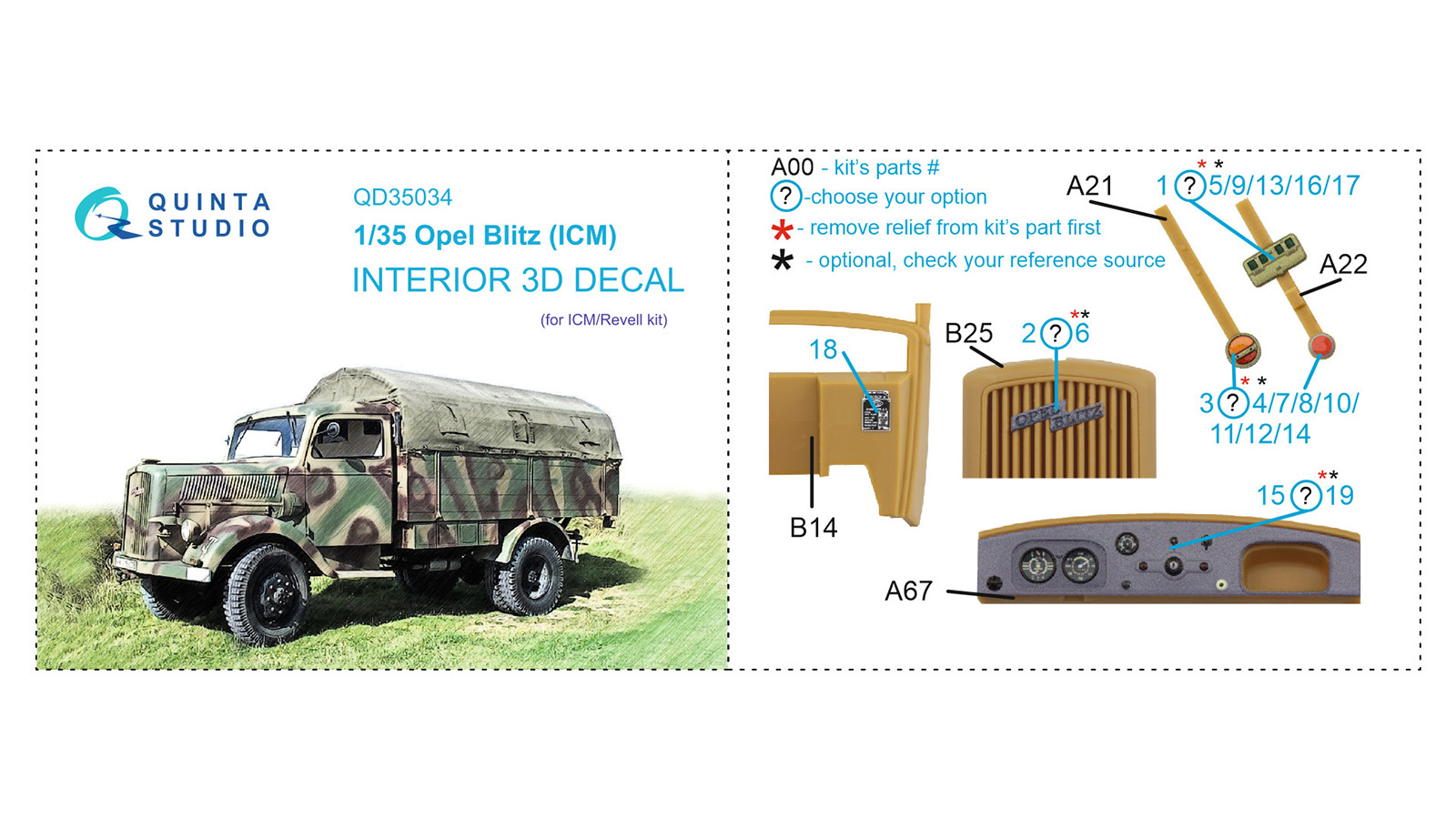 QUINTA STUDIO - 1/35 Opel Blitz 3D-Print & color Interior (ICM)