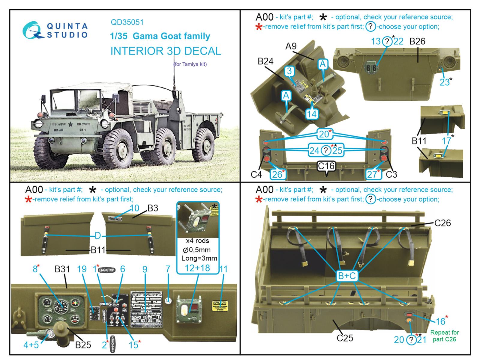 Quinta Studio - 1/35 Gama Goat family 3D-Printed & coloured Interior on decal paper (for Tamiya kits)