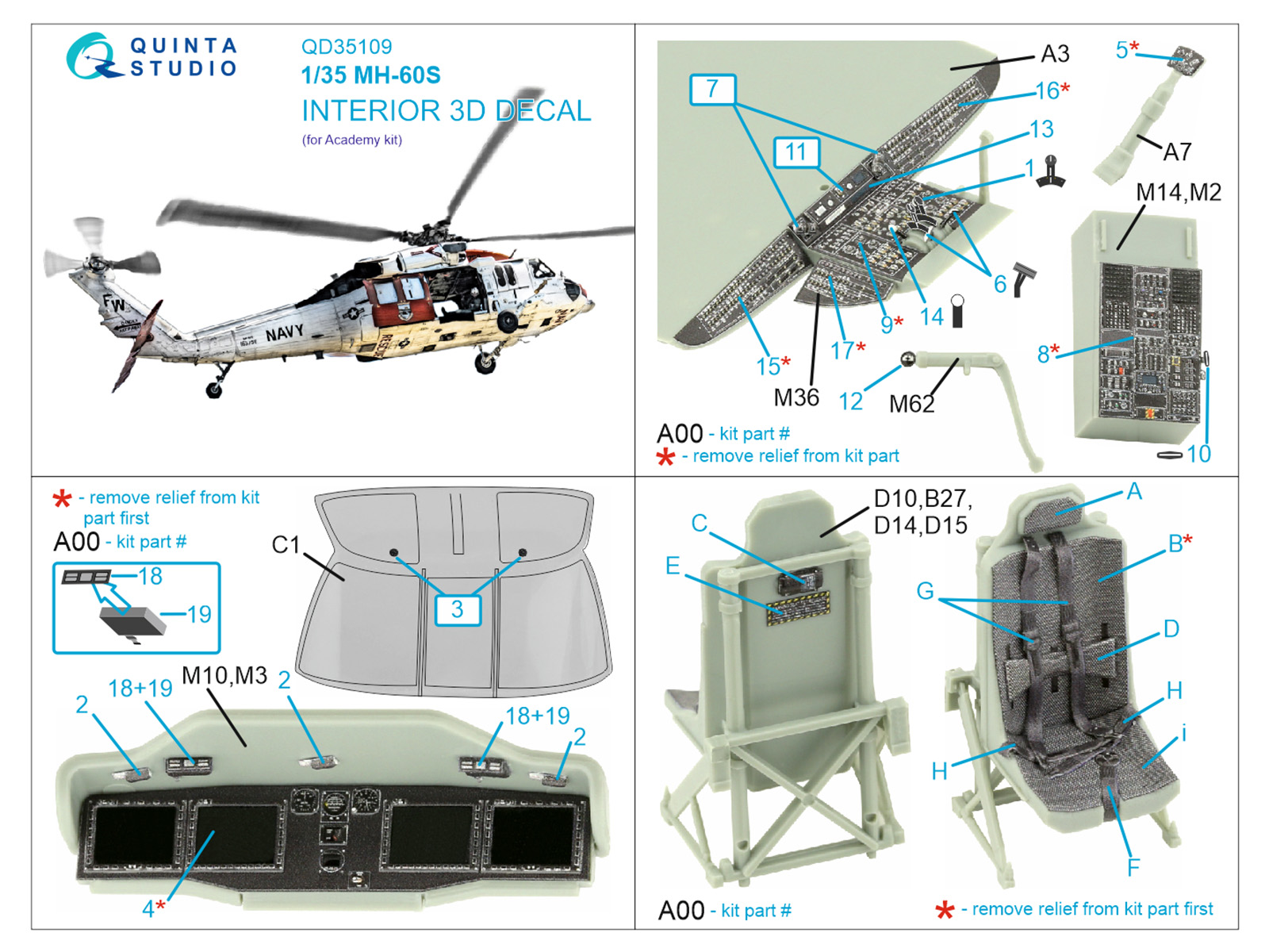 Quinta Studio - 1/35 Sikorsky MH-60S 3D-Printed & coloured Interior for Academy