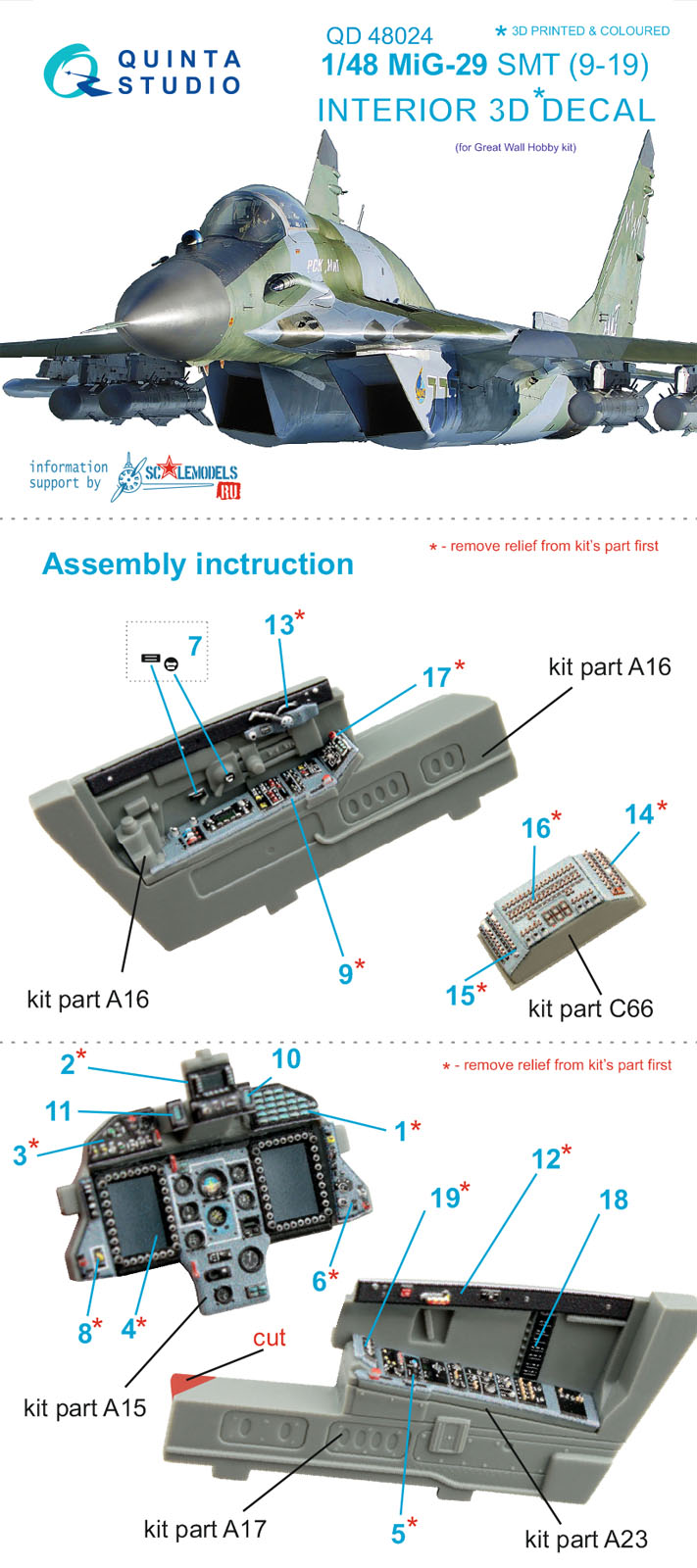 QUINTA STUDIO - 1/48 MiG-29 SMT (9-19) 3D-Print & colour Interior decal