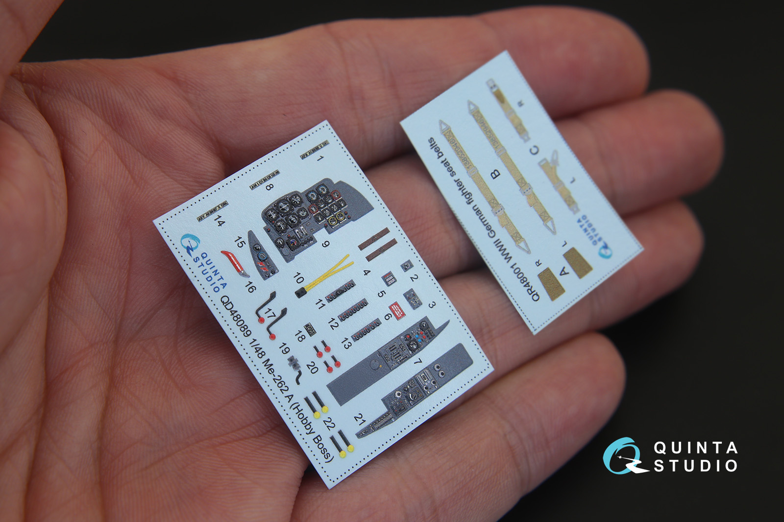 Quinta Studio - 1/48 Messerschmitt Me-262A 3D-Printed & coloured Interior on decal paper (for Hobby Boss kits)