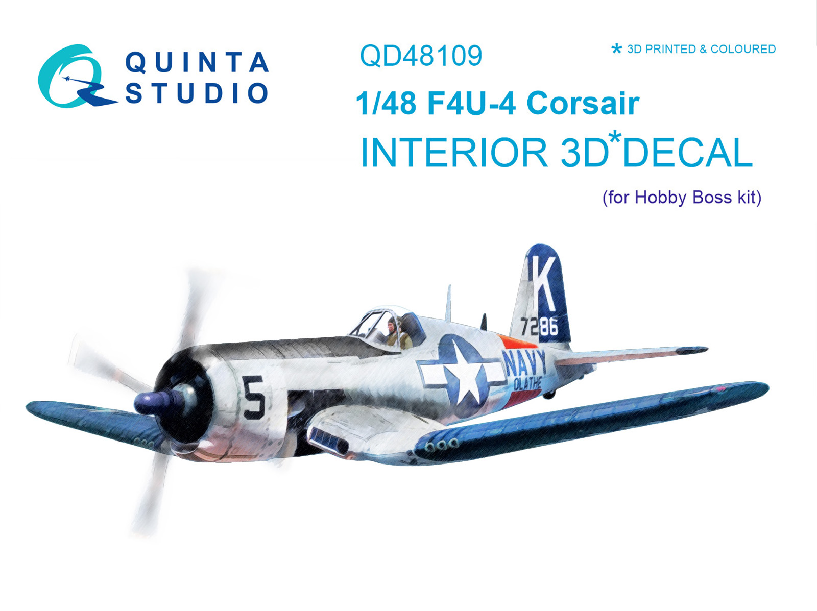 Quinta Studio - 1/48 Vought F4U-4 Corsair 3D-Printed & coloured Interior on decal paper (for Hobby Boss kits)