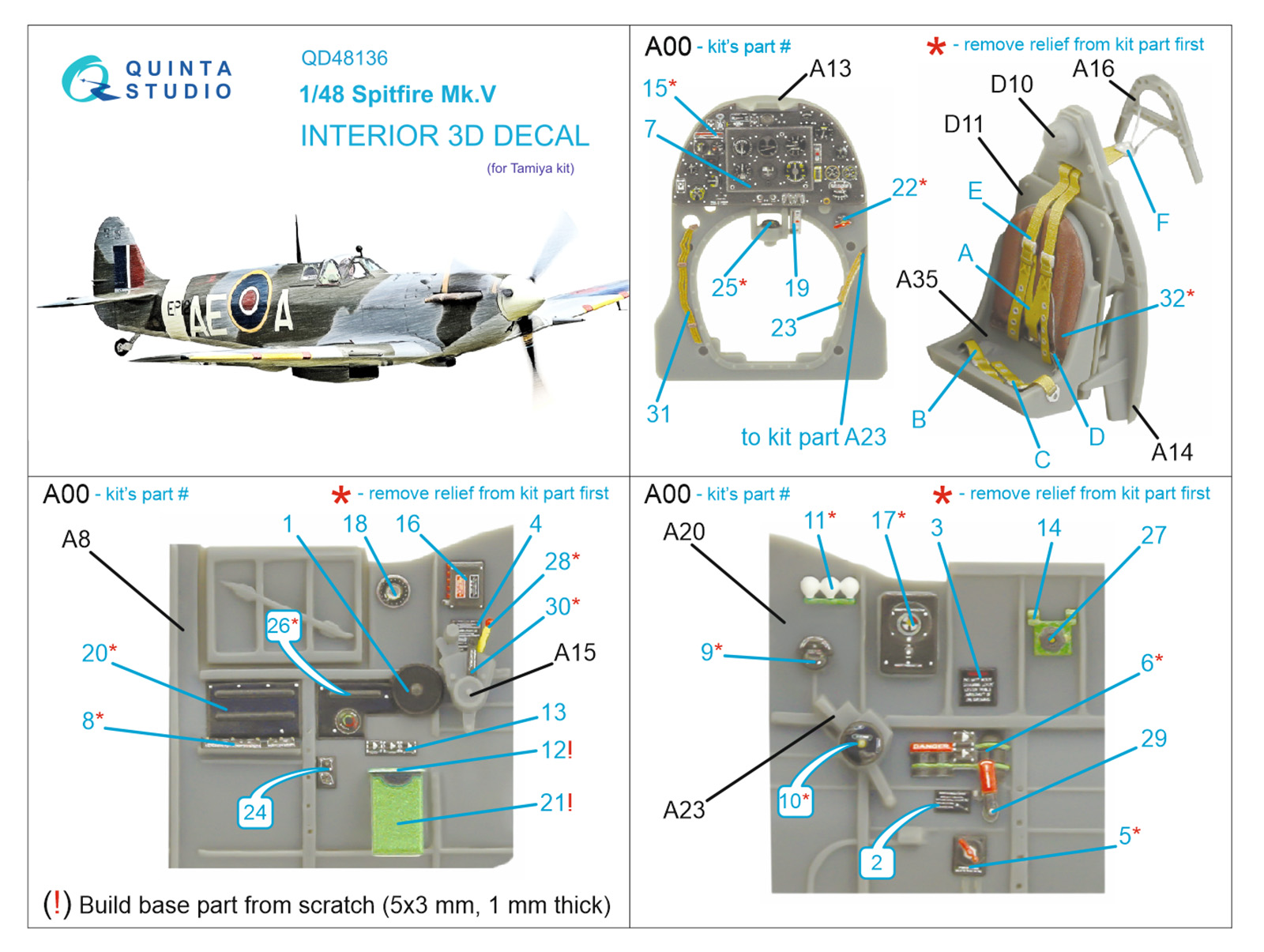Quinta Studio - 1/48 Supermarine Spitfire Mk.V 3D-Printed & coloured Interior on decal paper (for Tamiya kits)