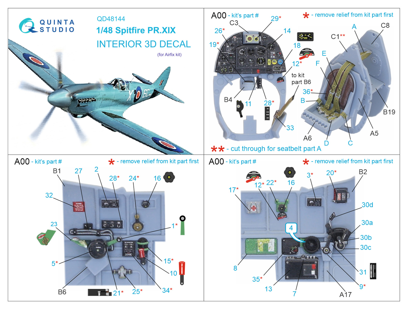 QUINTA STUDIO - 1/48 Spitfire PR.XIX 3D-Printed & color Interior (AIRF)