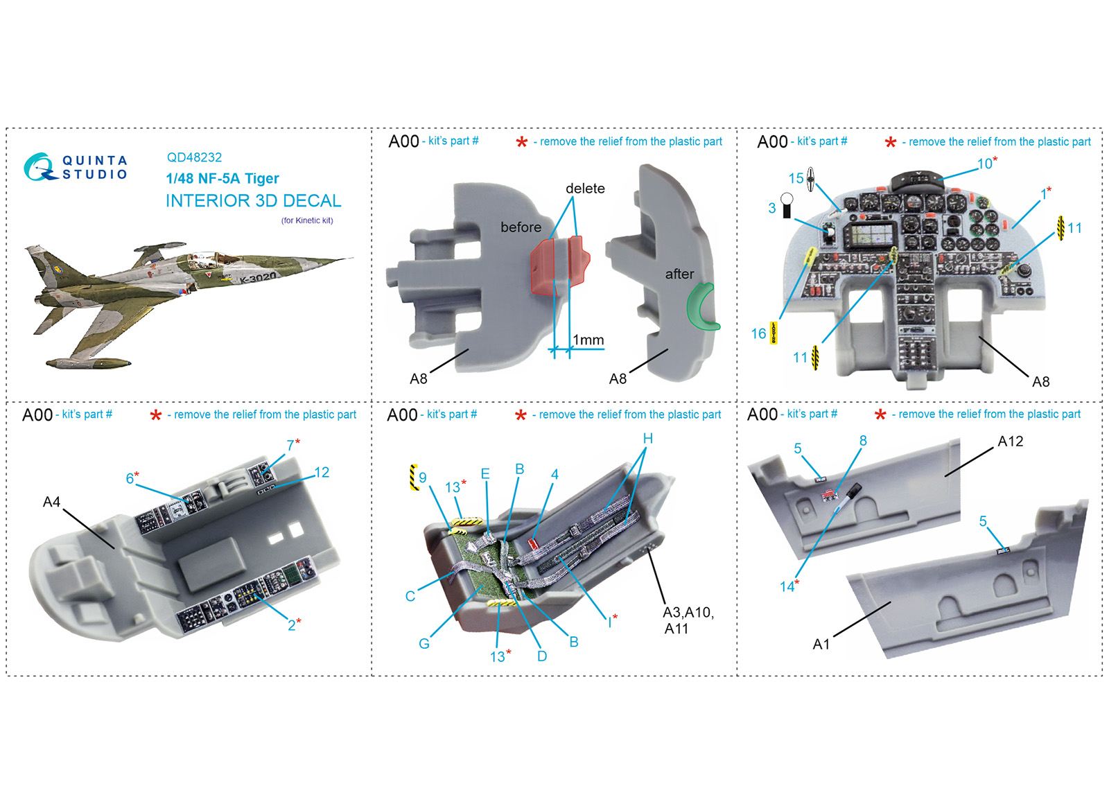 Quinta Studio - 1/48 Northrop NF-5A 3D-Printed & coloured Interior on decal paper (for Kinetic)