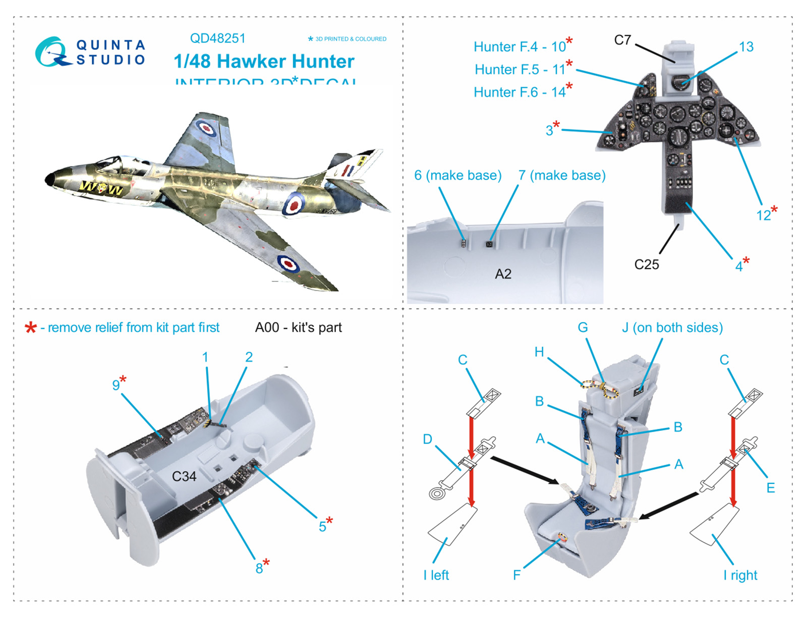 QUINTA STUDIO - 1/48 Hawker Hunter 3D-Printed & color Interior (AIR)