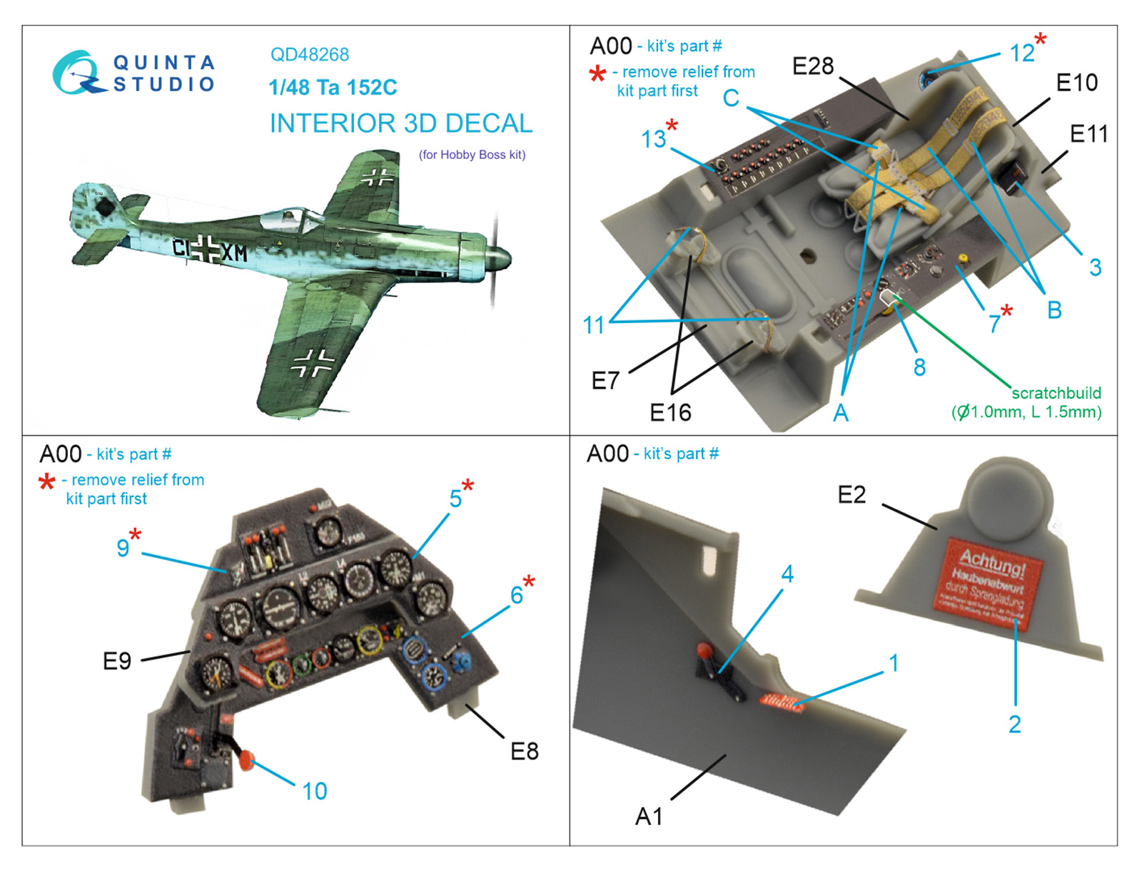 Quinta Studio - 1/48 Focke-Wulf Ta-152C 3D-Printed & coloured Interior on decal paper (for Hobby Boss kits)