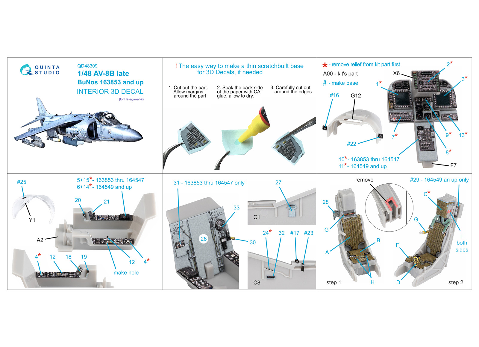 Quinta Studio - 1/48 McDonnell-Douglas AV-8B Harrier Late 3D-Printed & coloured Interior on decal paper (for Hasegawa kits)