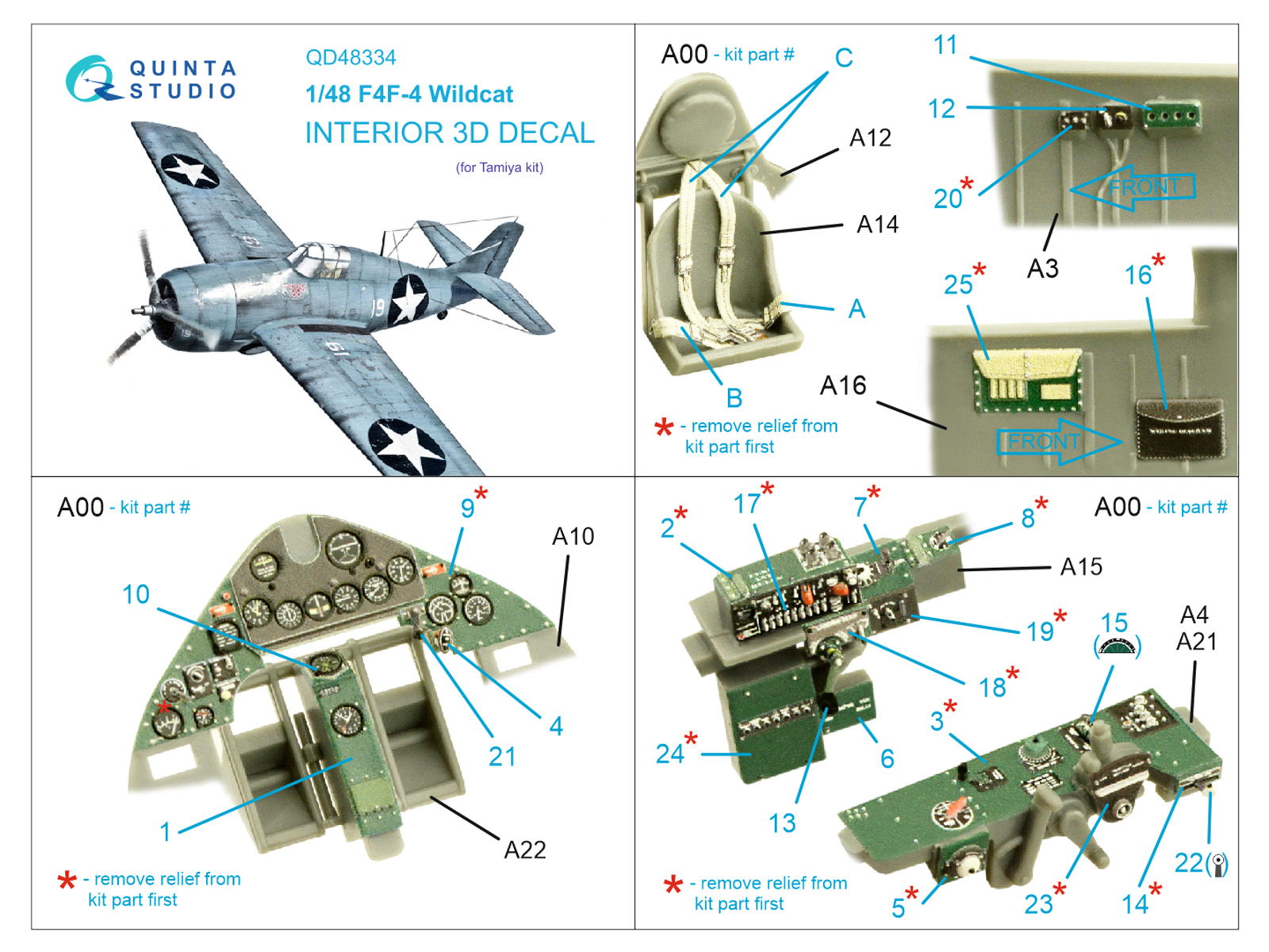 Quinta Studio - 1/48 F4F-4 Wildcat Interior on decal paper for Tamiya