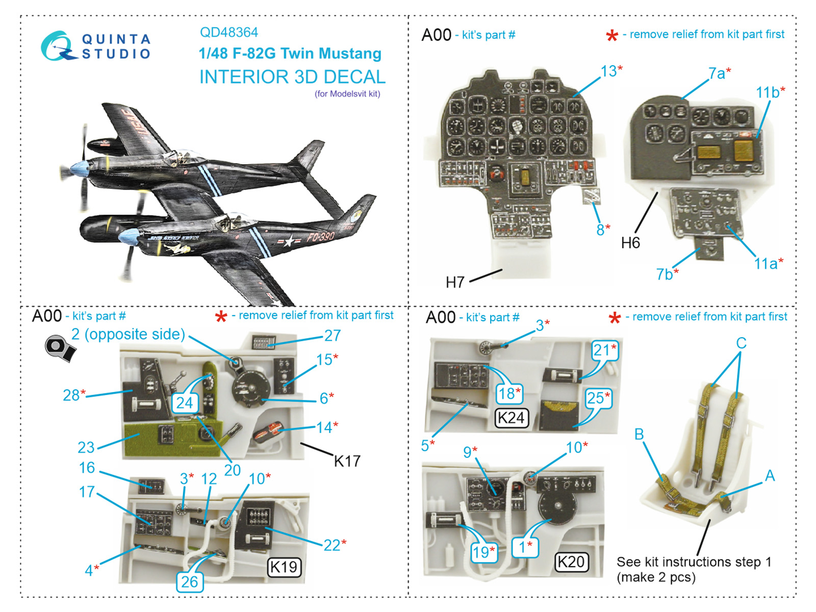 Quinta Studio - 1/48 North-American F-82G Twin Mustang 3D-Printed & coloured Interior on decal paper (for Modelsvit kits)