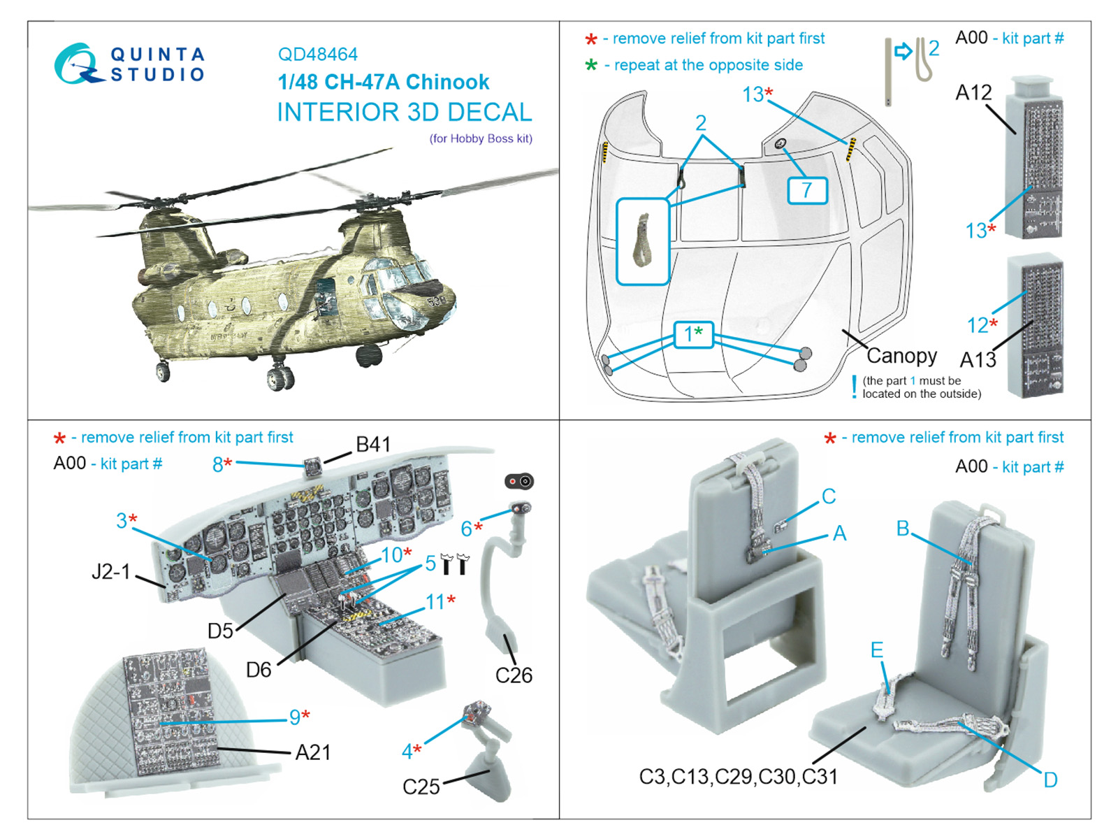 Quinta Studio - 1/48 CH-47A Interior for HobbyBoss
