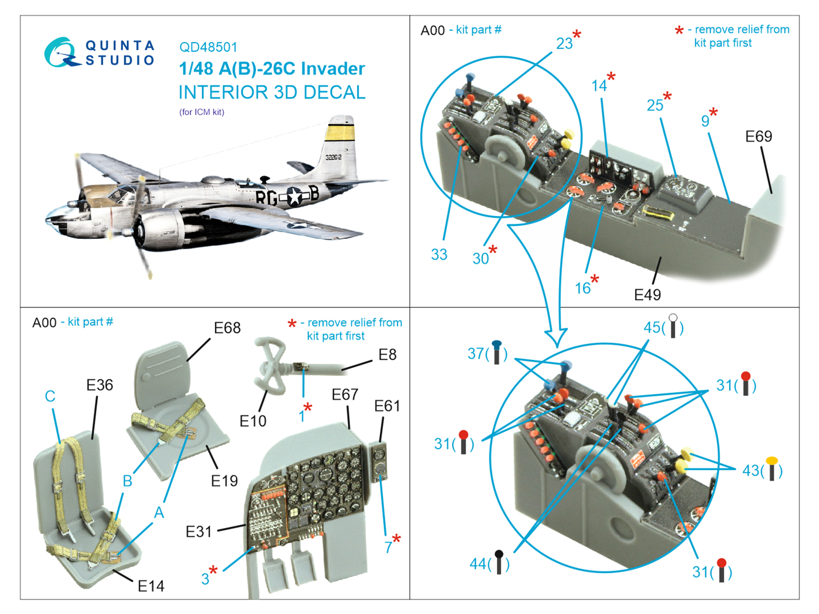 Quinta Studio - 1/48 Douglas A-26C Invader 3D-Printed & coloured Interior (for Icm kits)