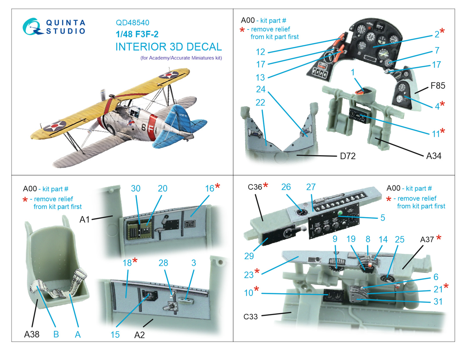 QUINTA STUDIO - 1/48 F3F-2 color Interior for Academy / accurate miniature