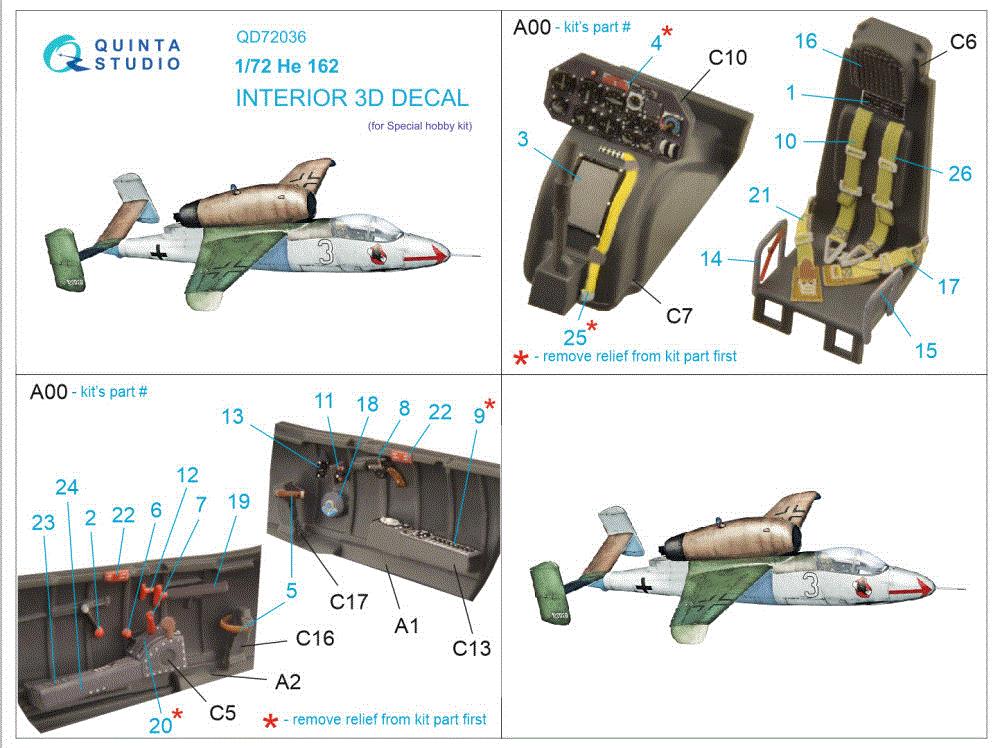 QUINTA STUDIO - 1/72 He 162 3D-Printed & color Interior (SP.HOB.)