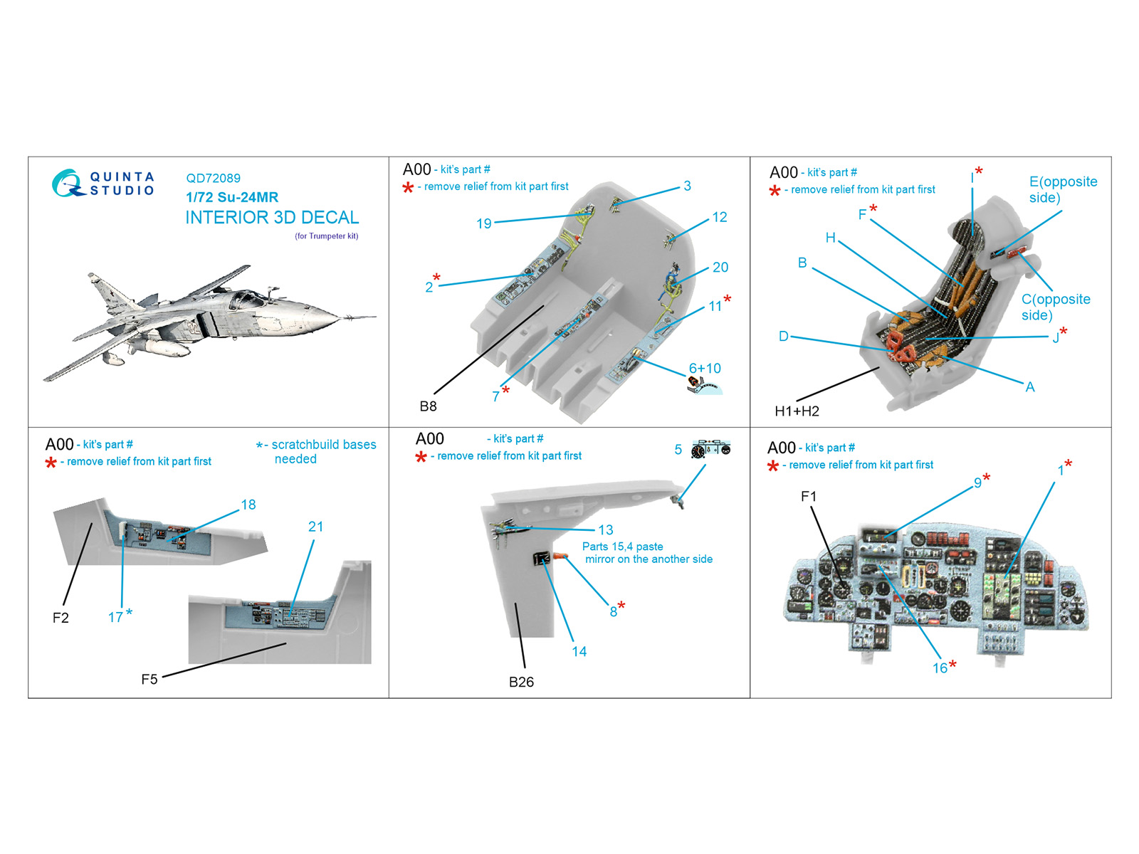 Quinta Studio - 1/72 Sukhoi Su-24MR 3D-Printed & coloured Interior on decal paper (for Trumpeter kits)