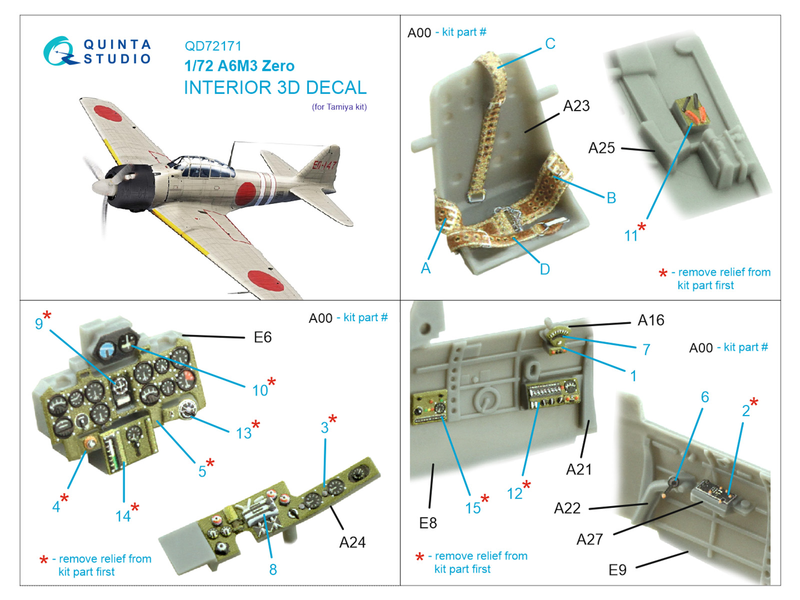 QUINTA STUDIO - 1/72 A6M3 Zero 3D-Printed & color Interior for Tamiya