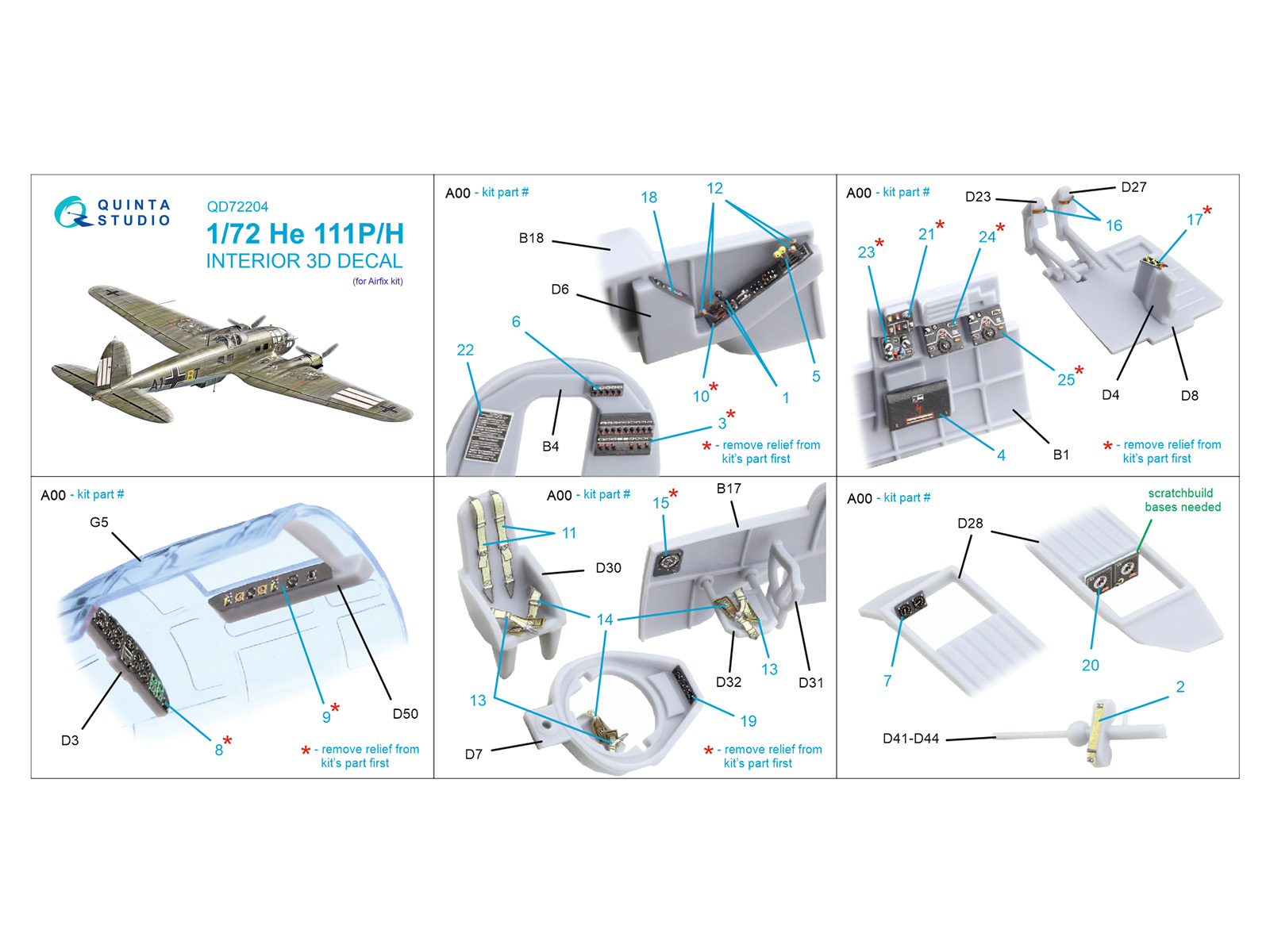 Quinta Studio - 1/72 Heinkel He-111P/H 3D-Printed & coloured Interior for Airfix