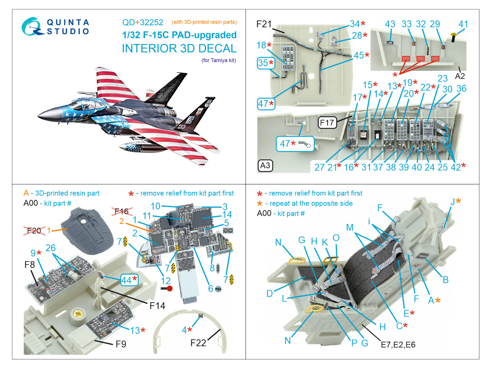 1/32 McDonnell F-15C Eagle PAD-upgraded Interior for Tamiya