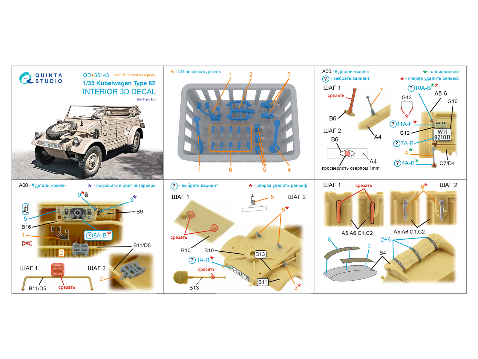 Quinta Studio - 1/35 Kubelwagen Type 82 3D-Printed & coloured Interior (for Hero kits) with 3D-printed resin parts