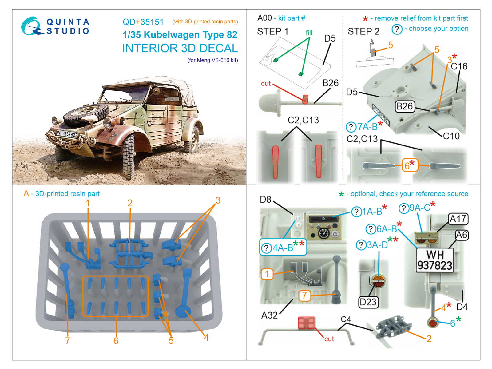 Quinta Studio - 1/35 Kubelwagen Type 82 Interior for Meng VS-016 with 3D-printed resin parts