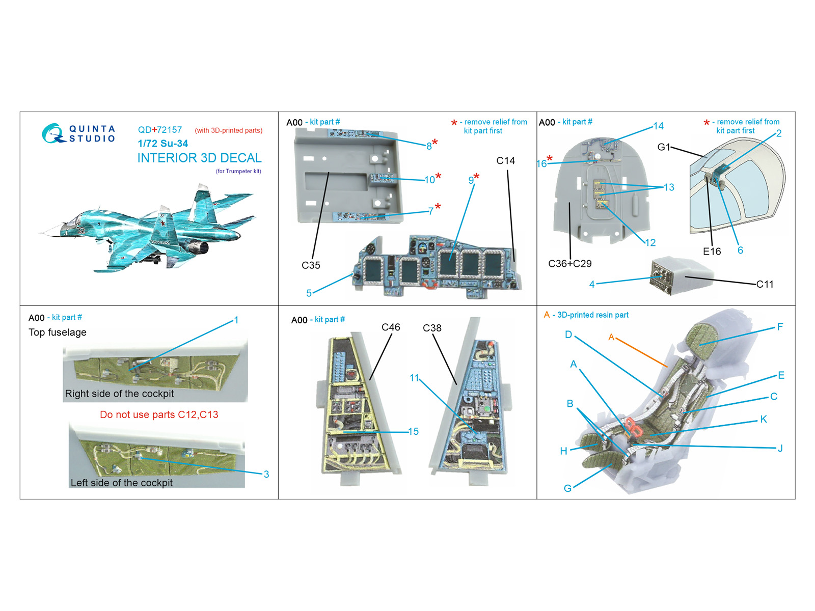Quinta Studio - 1/72 Su-34 Interior for Trumpeter with 3D-printed resin part