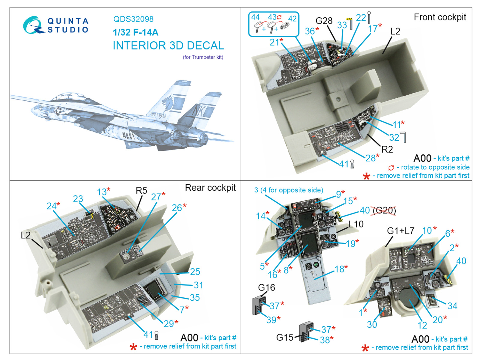 QUINTA STUDIO - 1/32 F-14A 3D-Printed & color Interior (TRUMP) SMALL