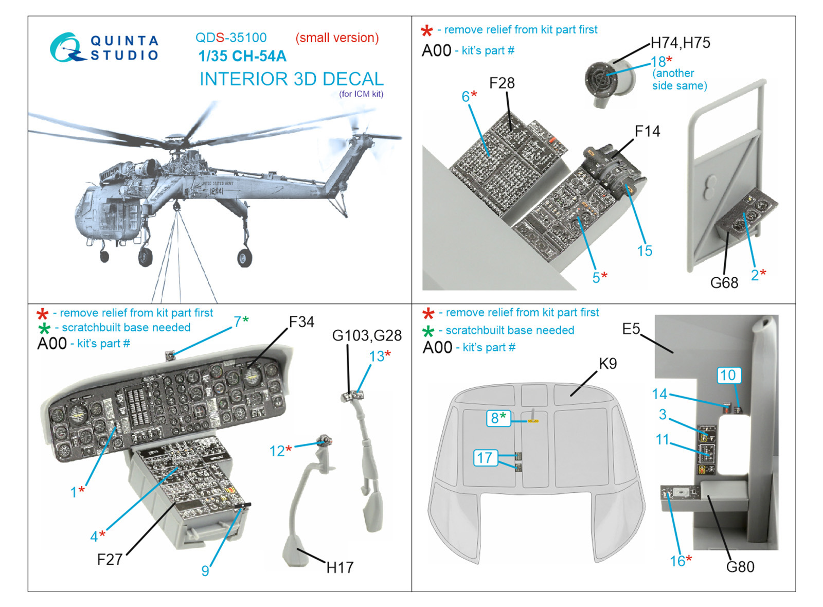 Quinta Studio - 1/35 Sikorsky CH-54A 3D-Printed & coloured Interior on decal paper (for Icm kits) (Small version)