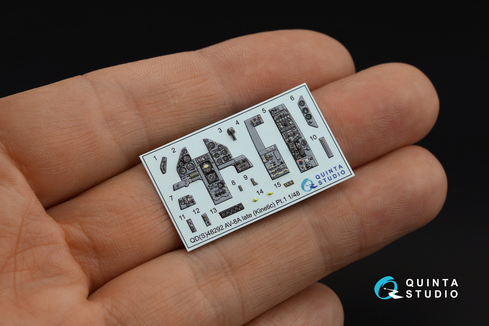 Quinta Studio - 1/48 McDonnell-Douglas AV-8A Late 3D-Printed & coloured Interior on decal paper (for Kinetic Model kits) (SMALL VERSION)
