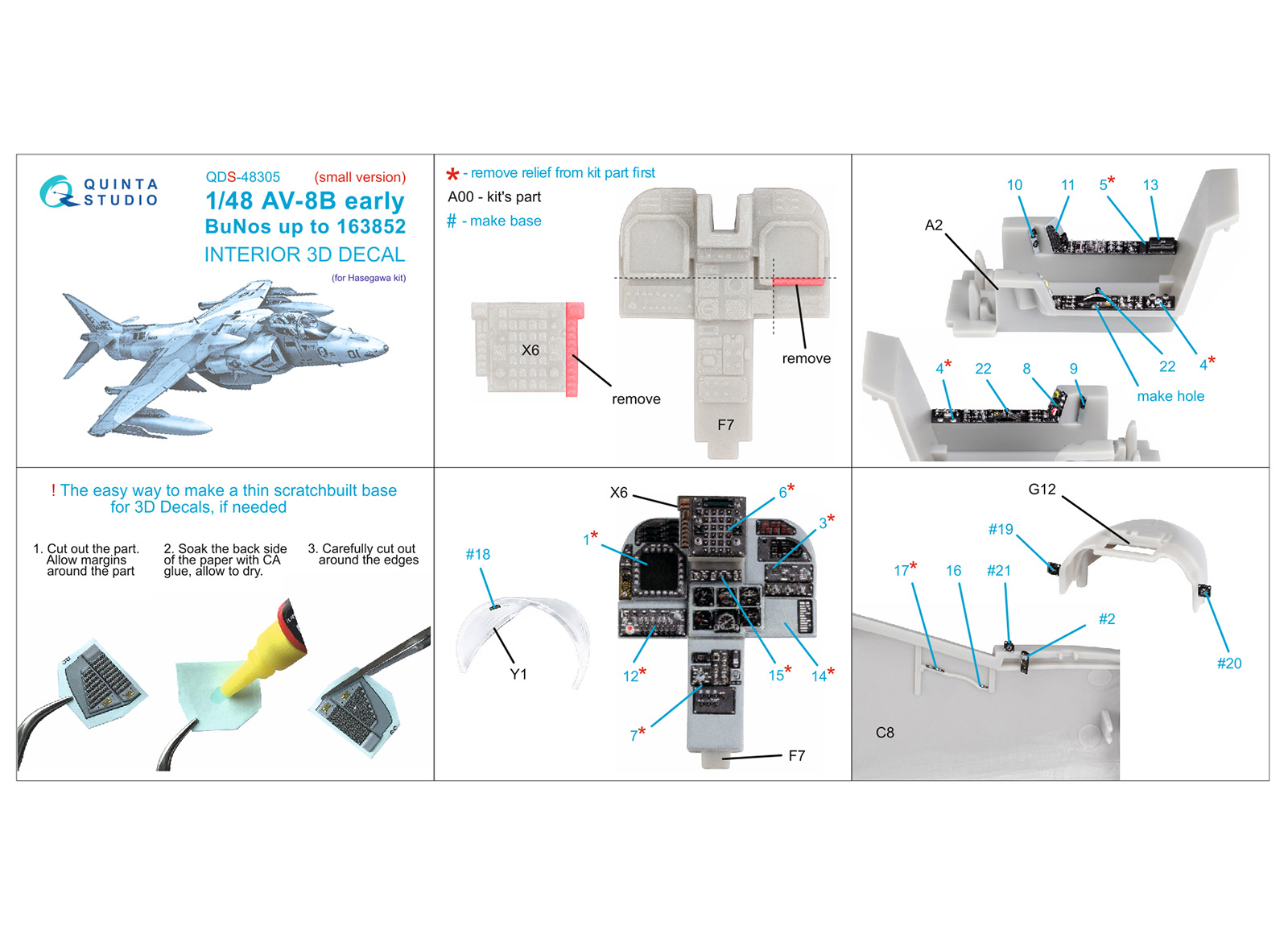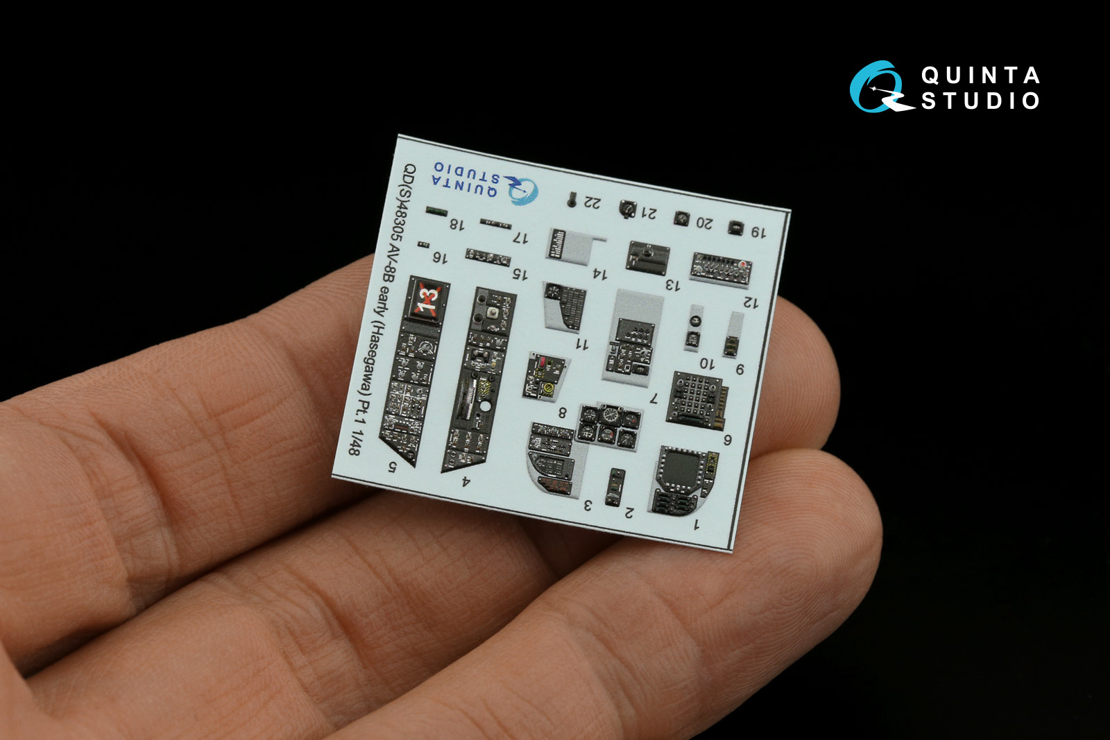Quinta Studio - 1/48 BAe McDonnell-Douglas AV-8B Harrier Early 3D-Printed & coloured Interior on decal paper (for Hasegawa kits) (SMALL VERSION)