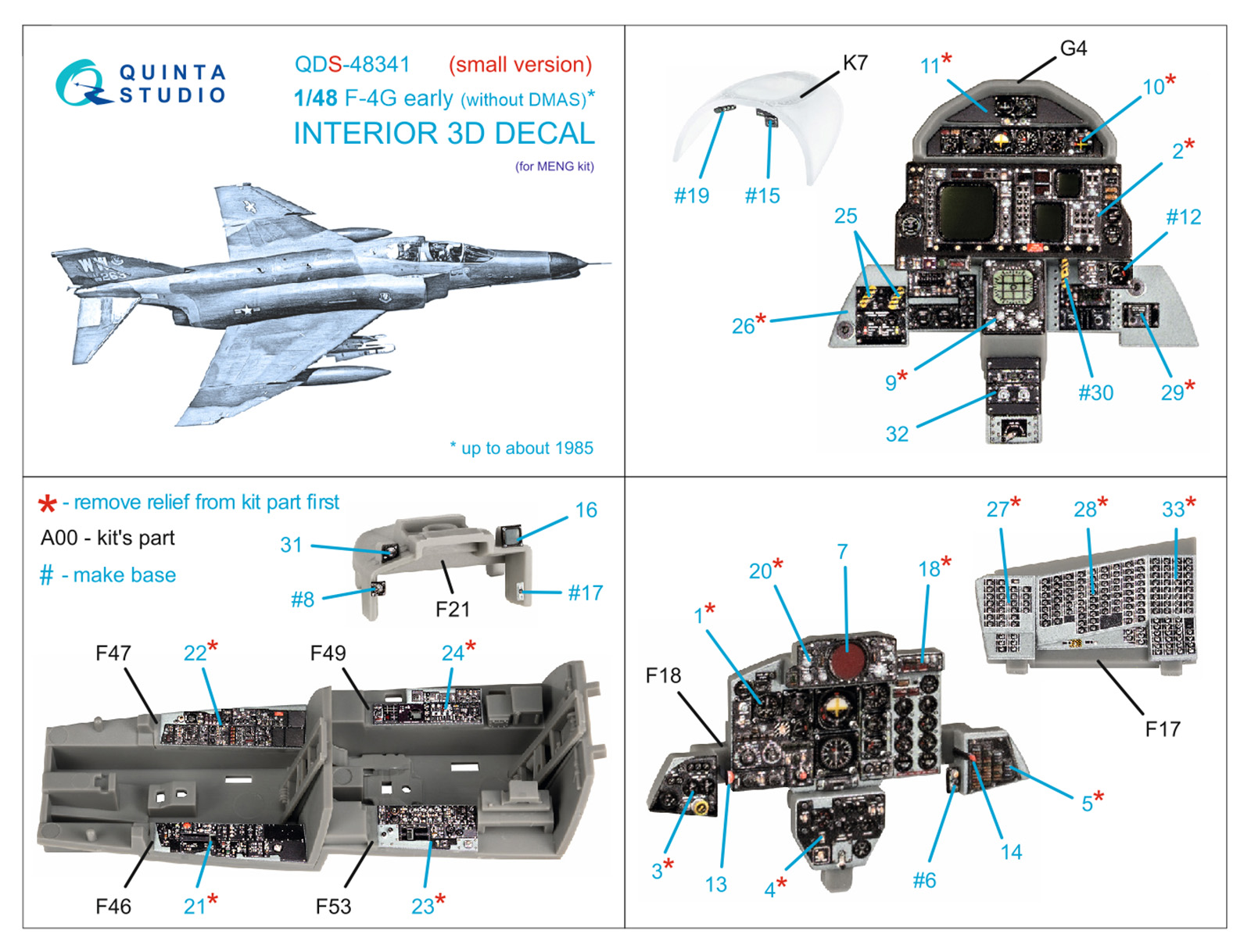 Quinta Studio - 1/48 McDonnell F-4G Phantom early 3D-Printed & coloured Interior on decal paper (for Meng) (Small version)
