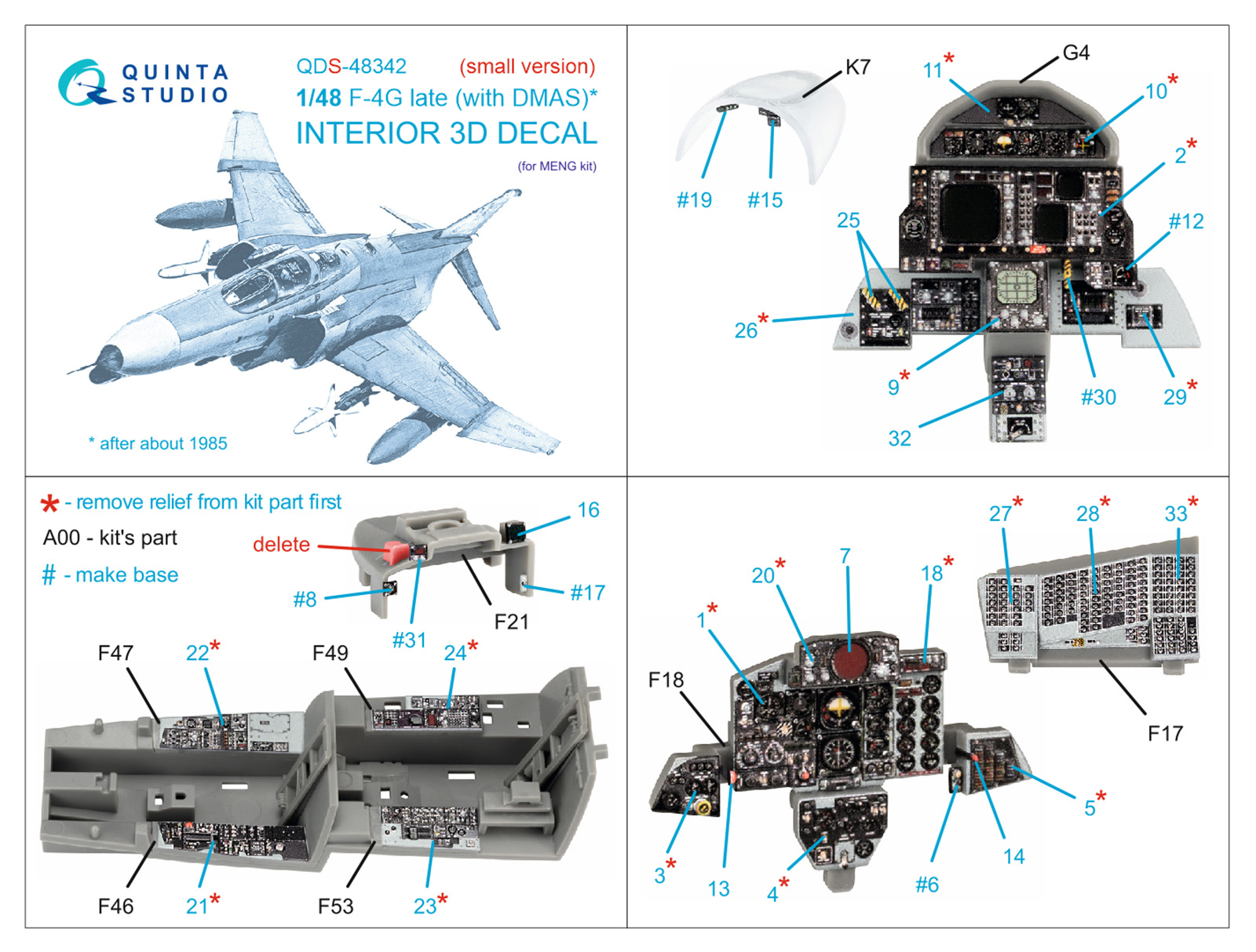 Quinta Studio - 1/48 McDonnell F-4G Phantom late 3D-Printed & coloured Interior on decal paper (for Meng) (Small version)