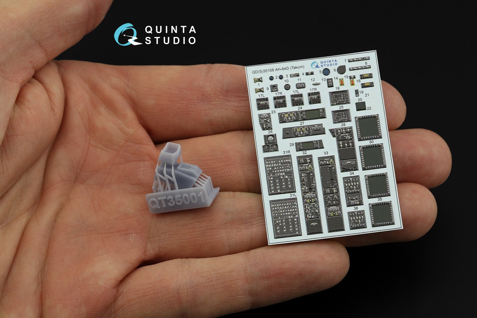 Quinta Studio - 1/35 Boeing/Hughes AH-64D 3D-Printed & coloured Interior on decal paper (for Takom kits) (Small version) (with 3D-printed resin parts)