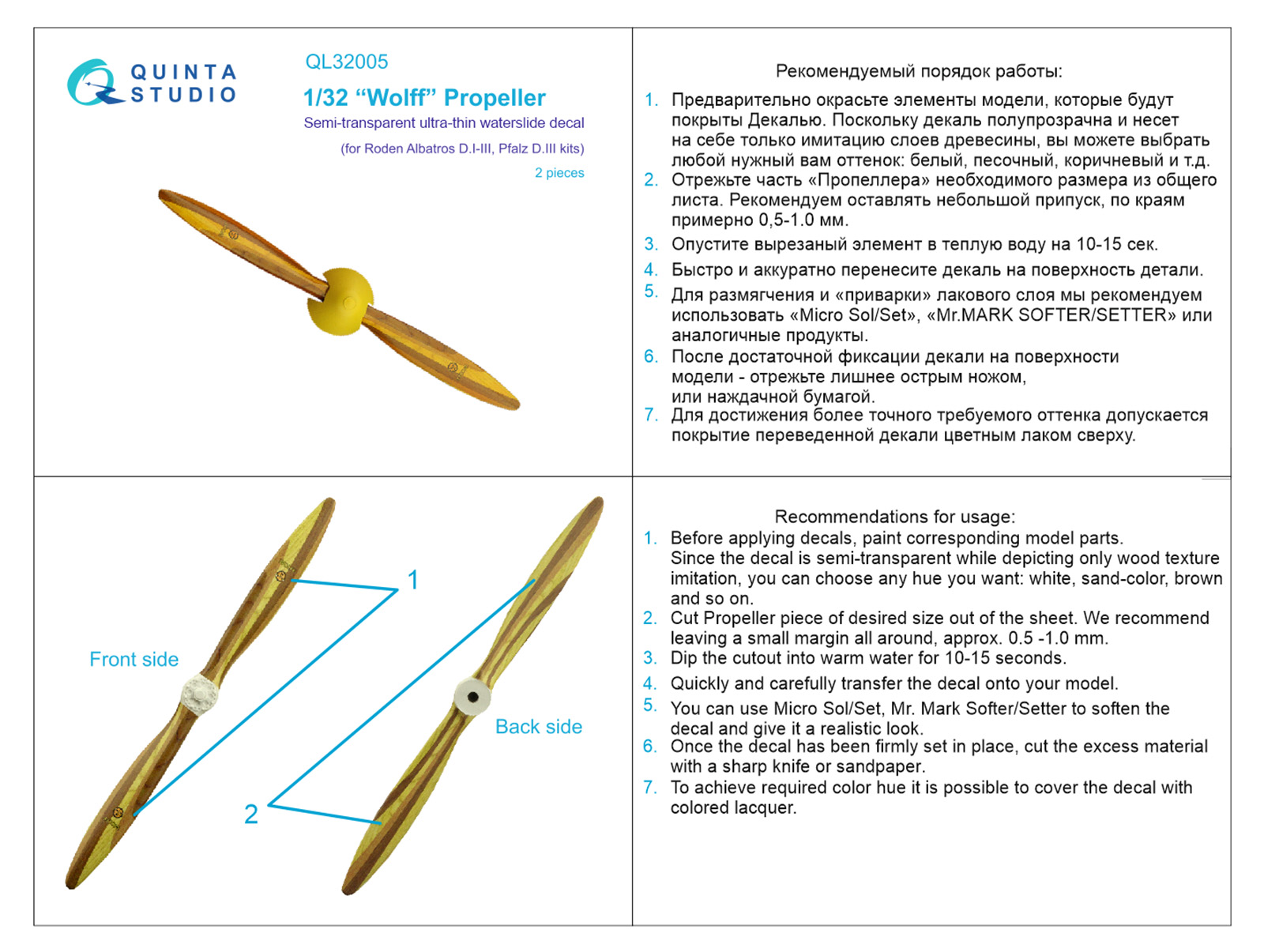 Quinta Studio - 1/32 Wooden Propellers Wolff (for Roden kits)