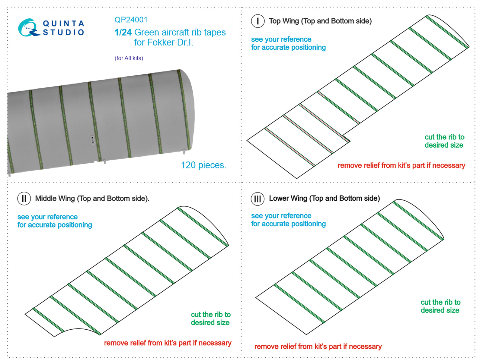 Quinta Studio - 1/24 Green rib tapes Fokker Dr.I Triplane (for Meng Model kits)