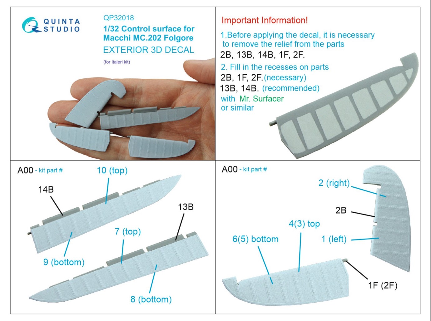 Quinta Studio - 1/32 Control surface for Macchi Mc.202 Folgore for Italeri