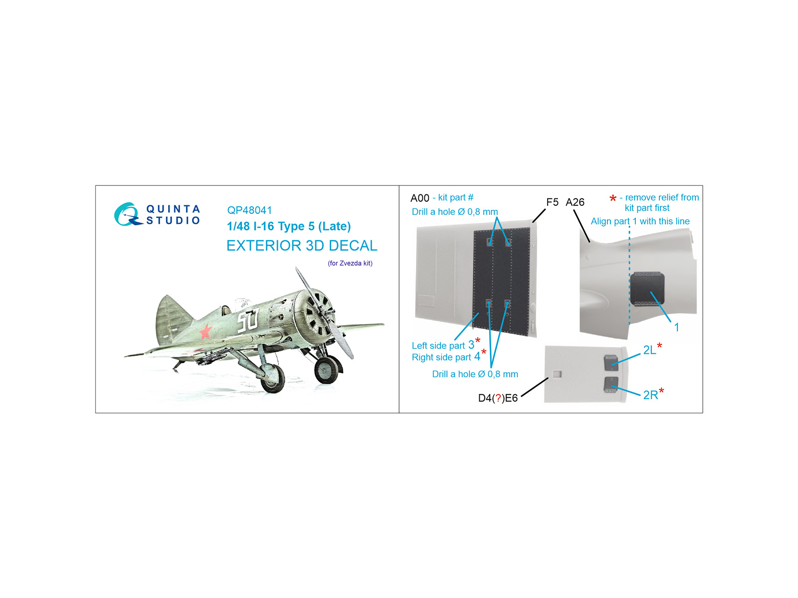 Quinta Studio - 1/48 Polikarpov I-16 Type 5 late Exterior set for Zvezda