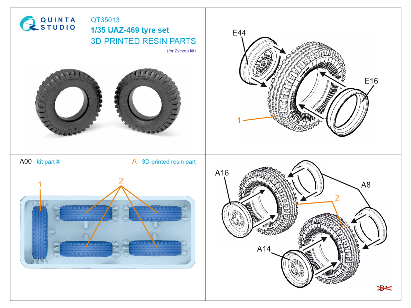 Quinta Studio - 1/35 UAZ-469 Family tyre set for Zvezda