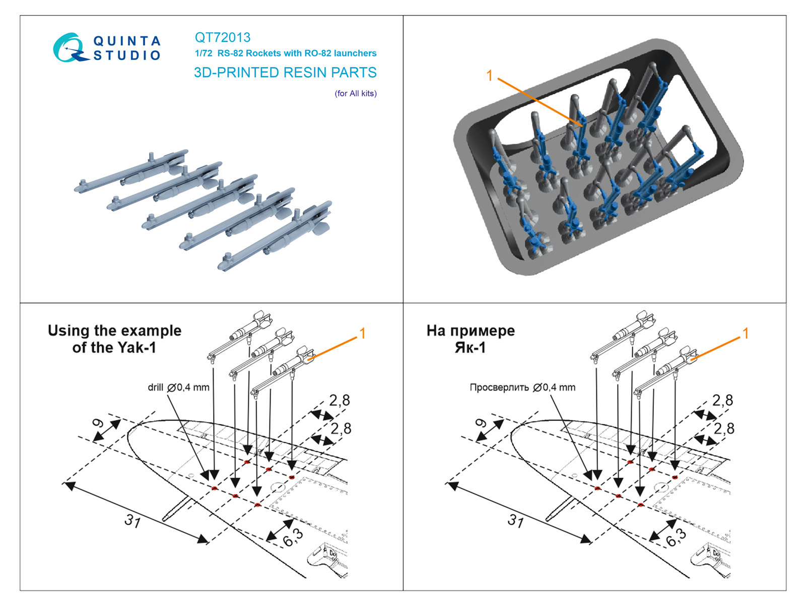 Quinta Studio - 1/72 RS-82 Rockets with RO-82 launchers, 10 pcs for Zvezda